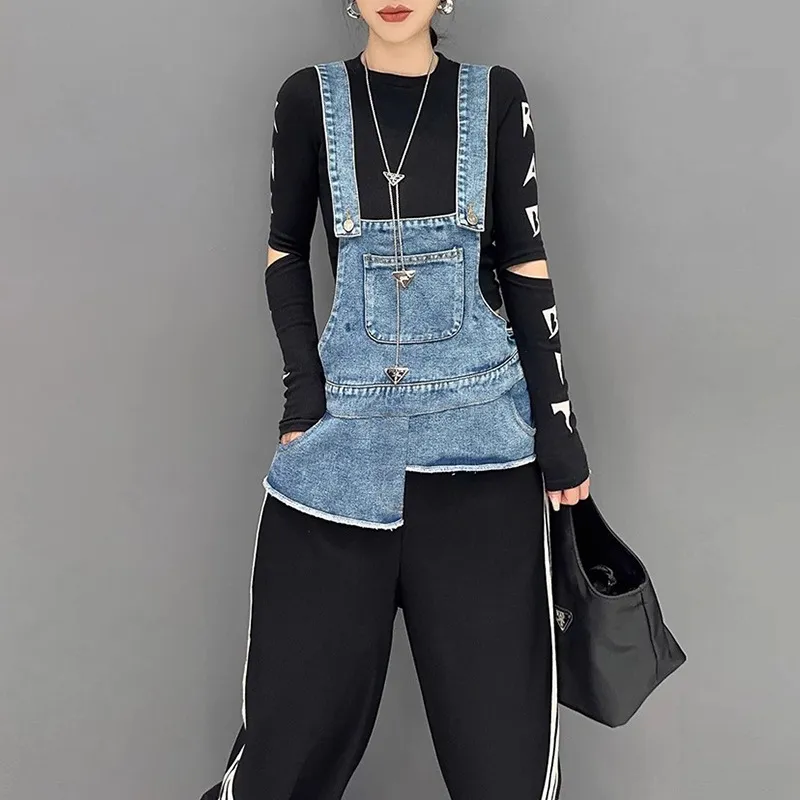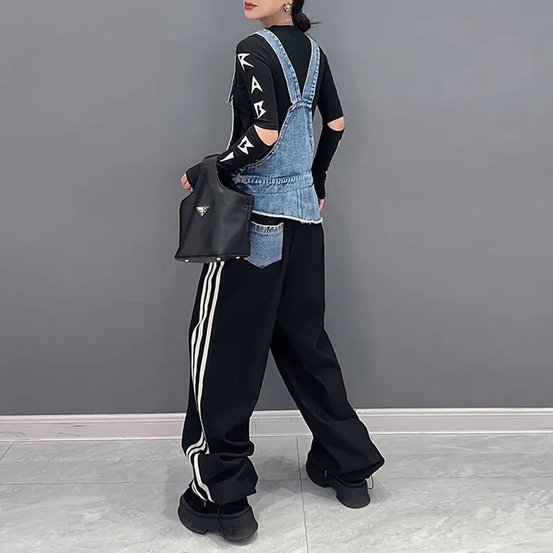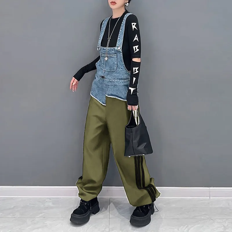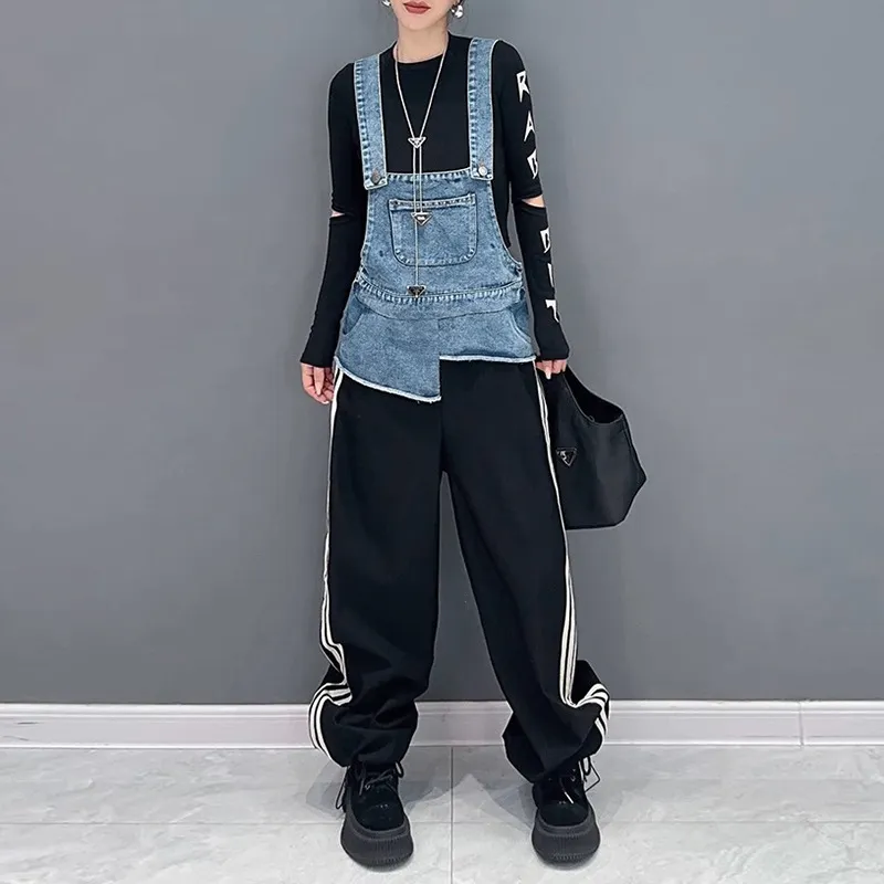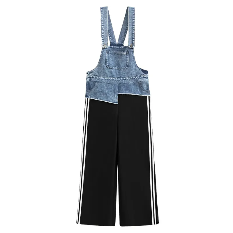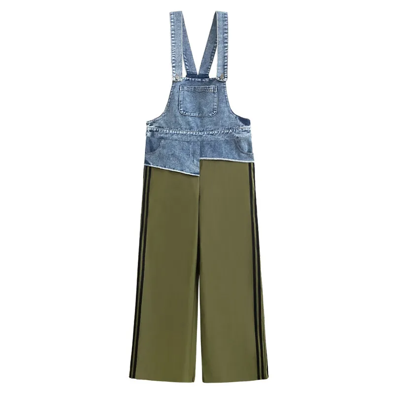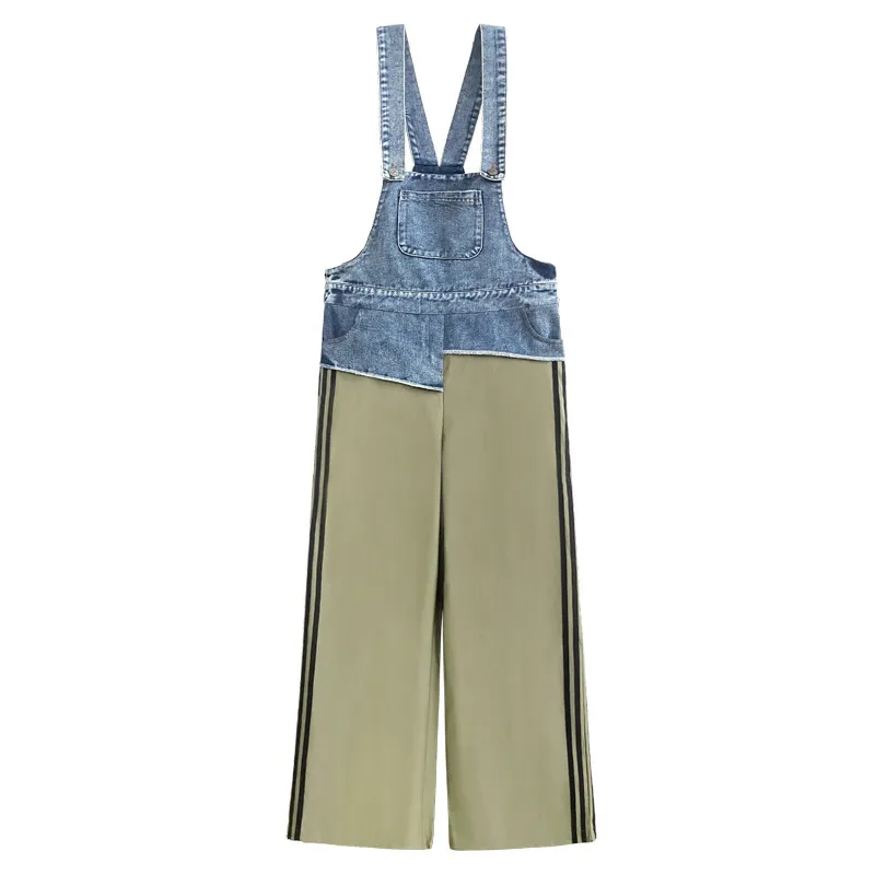 衣都精品- 2023新款歐貨洋氣撞色拼接牛仔背帶褲