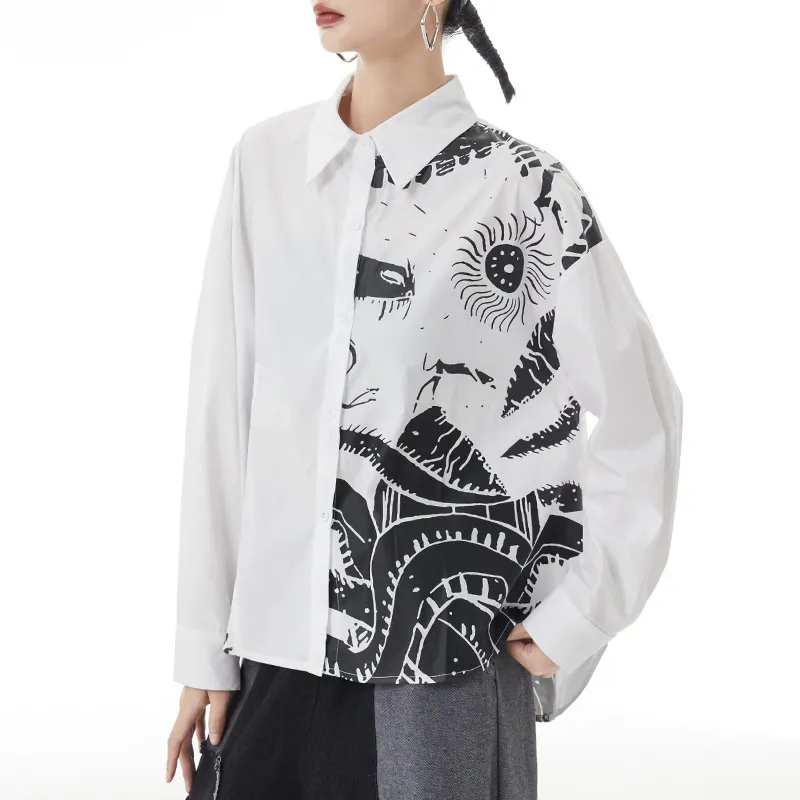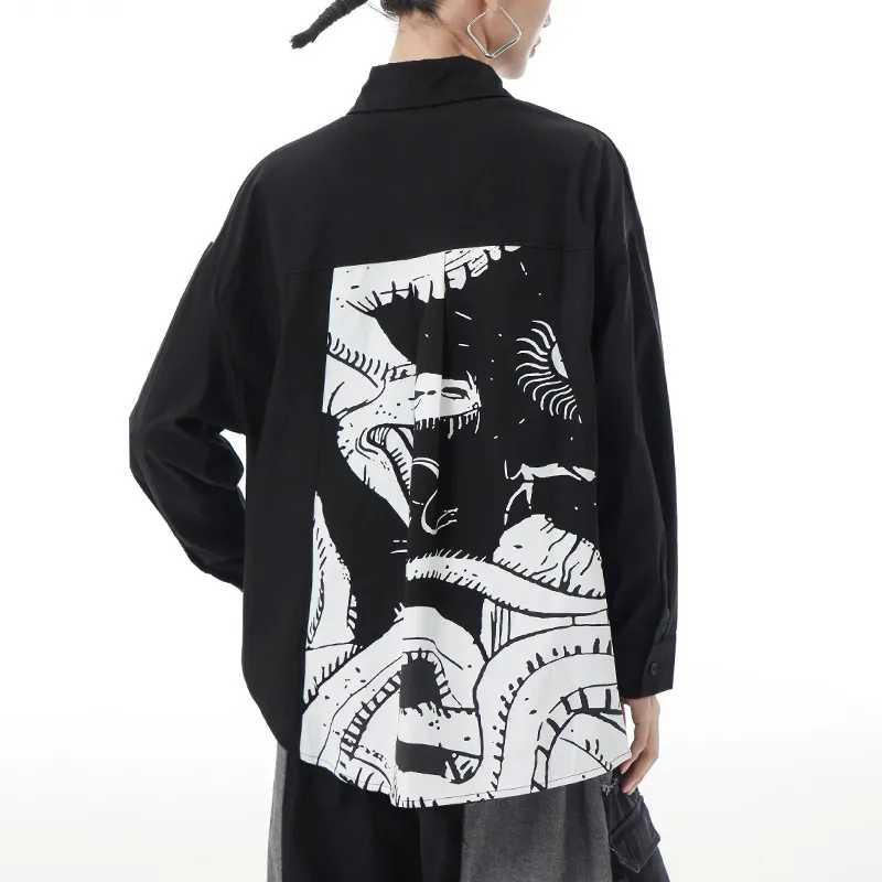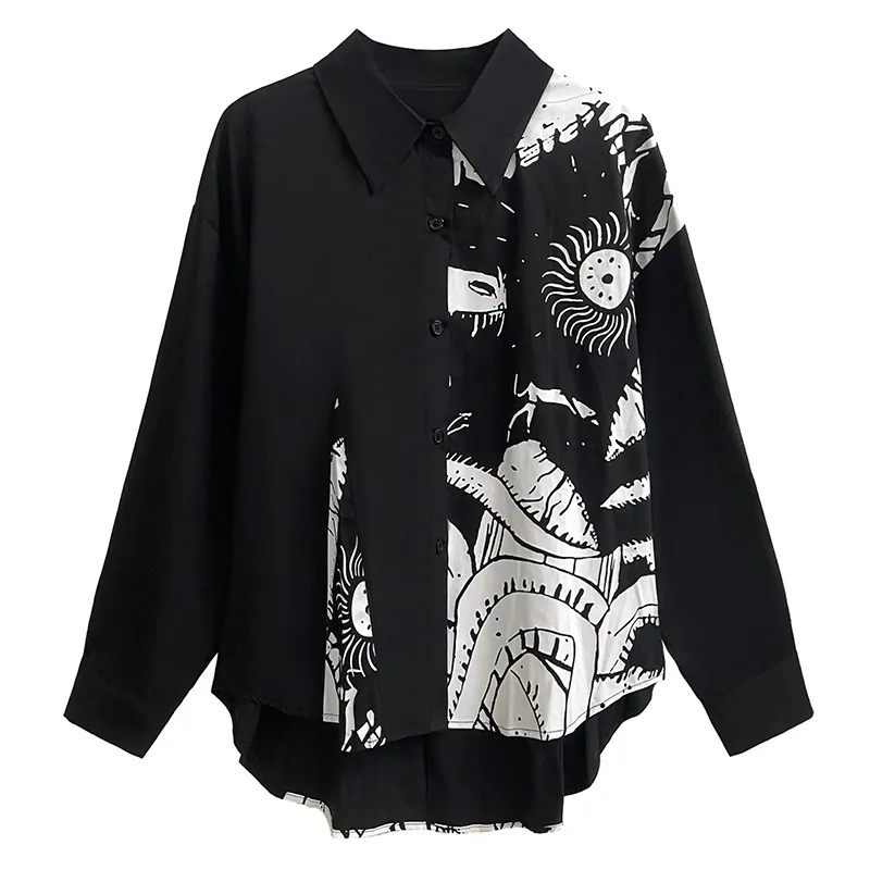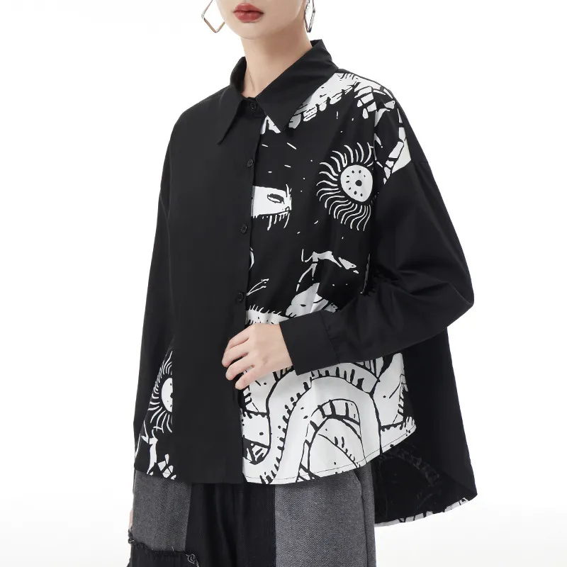 衣都精品- 2023新款黑暗風韓版抽象印花長袖上衣
