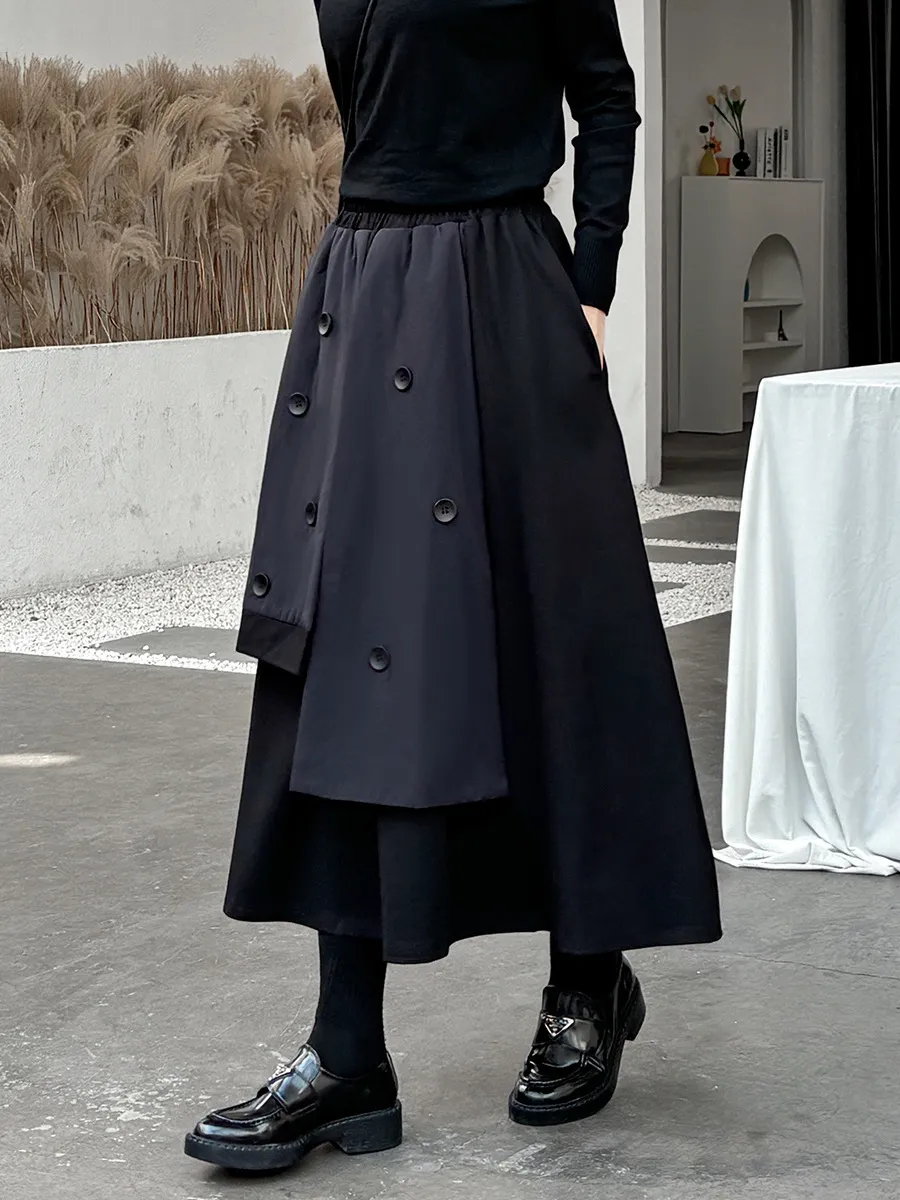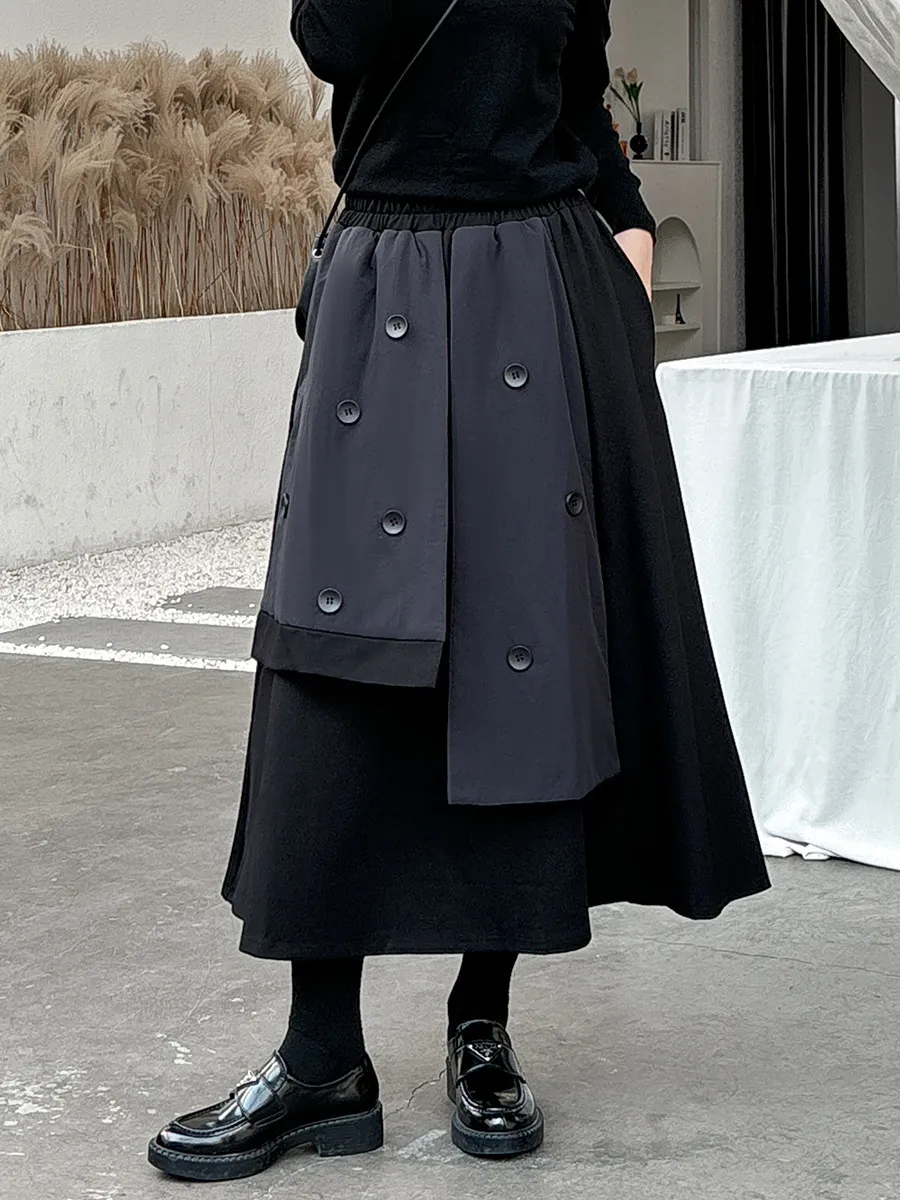 衣都精品- 2023新款暗黑風紐扣不規則拼接鬆緊腰半身裙