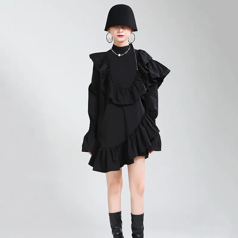 衣都精品- 2023新款暗黑風立體花朵設計寬鬆連衣裙