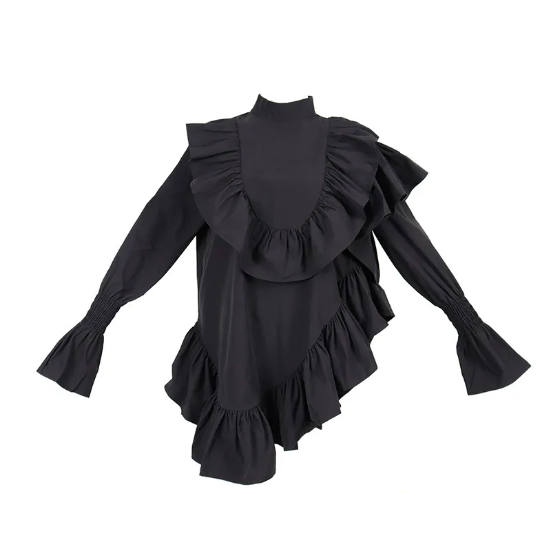 衣都精品- 2023新款暈染網紗不規則休閒長袖上衣