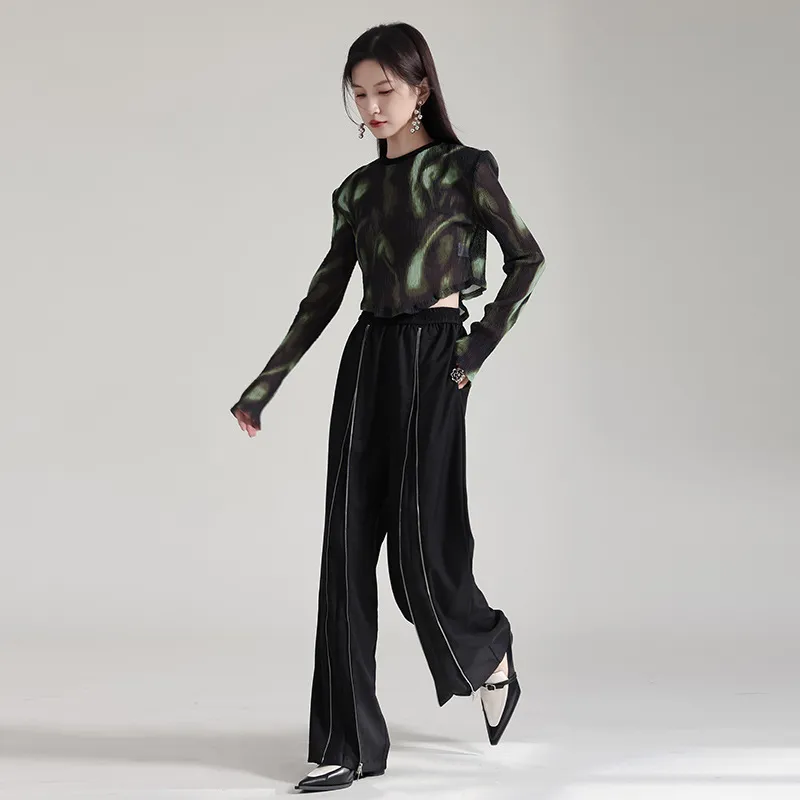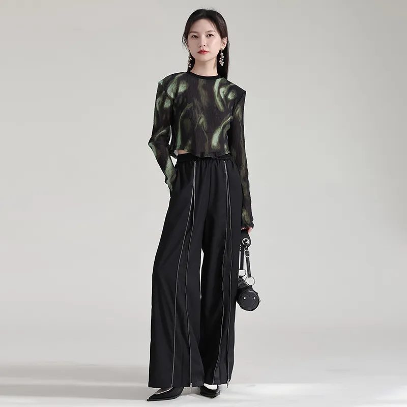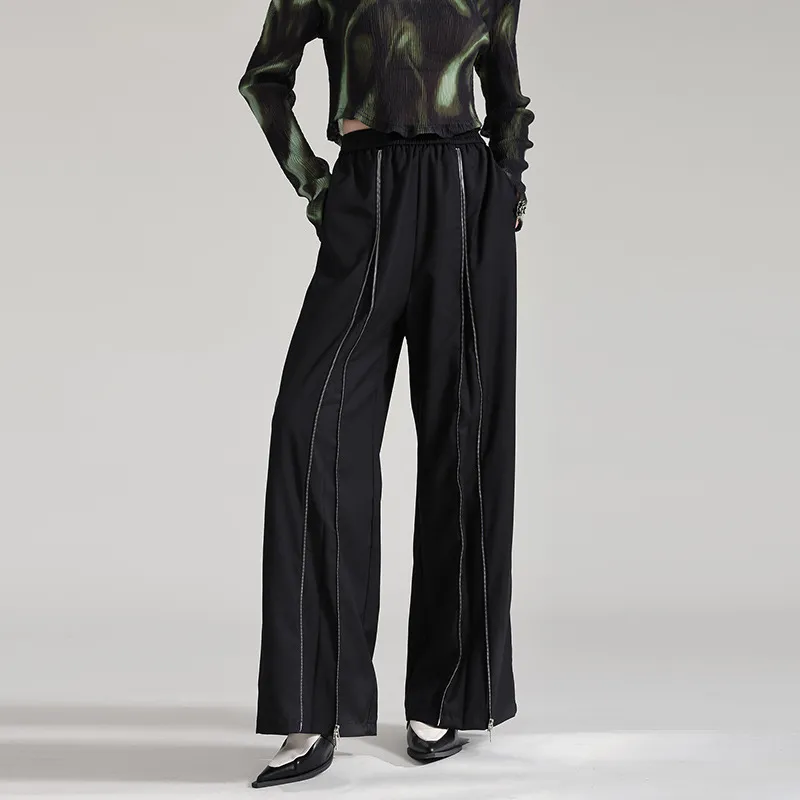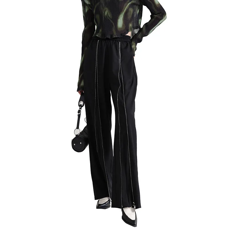 衣都精品- 2023新款時髦寬鬆顯瘦直筒拉鍊休閒褲