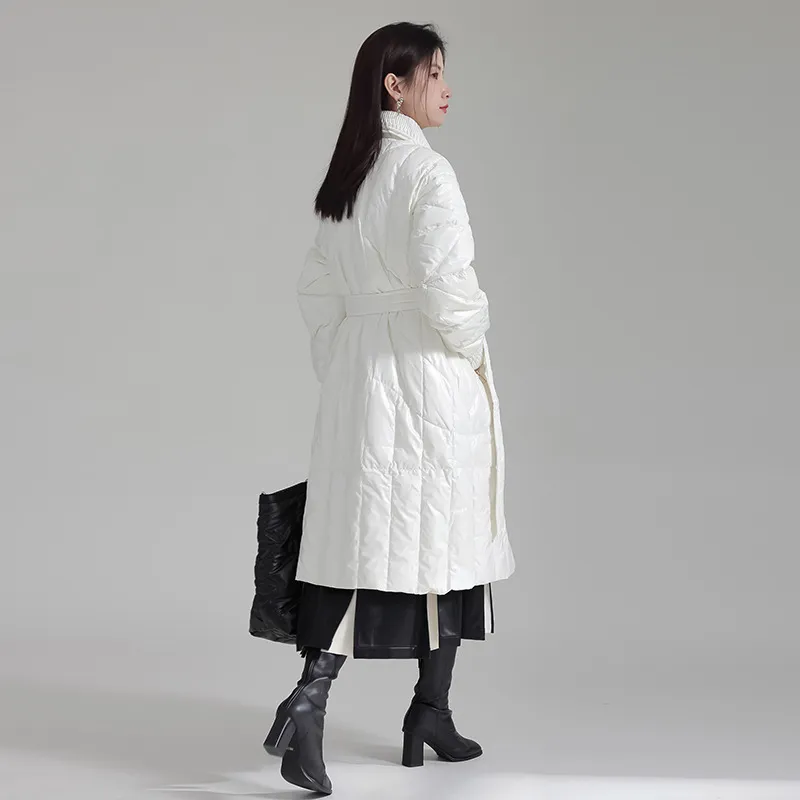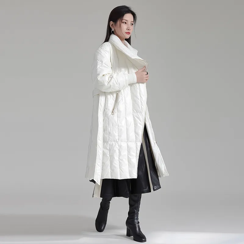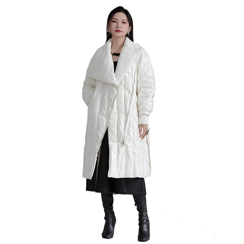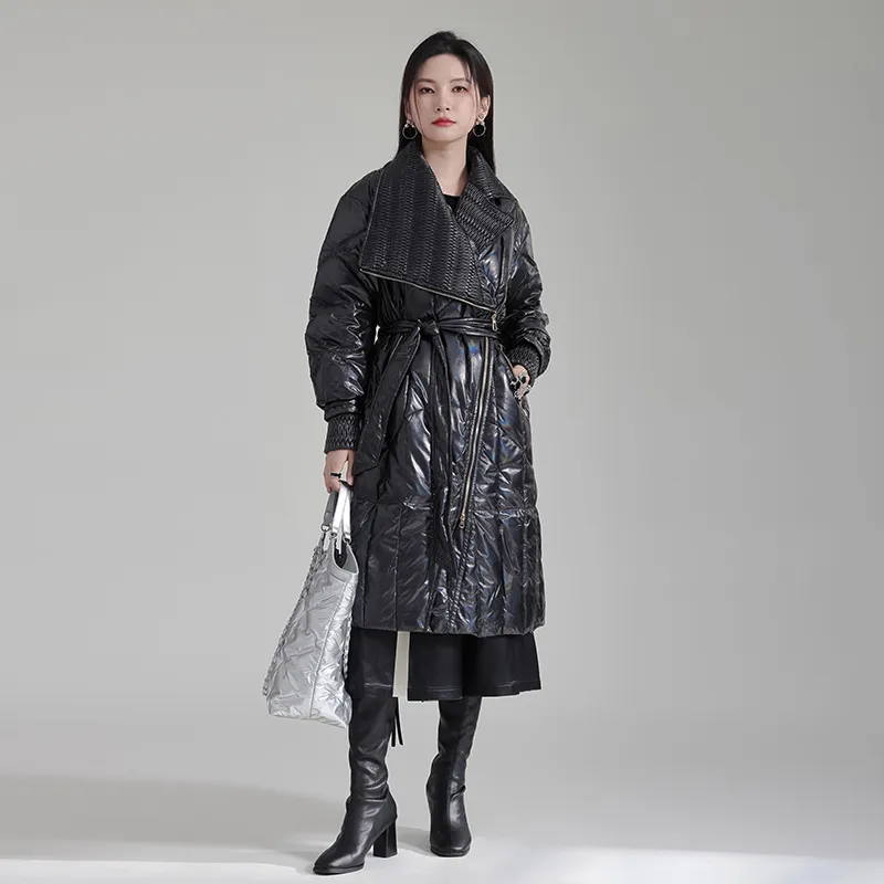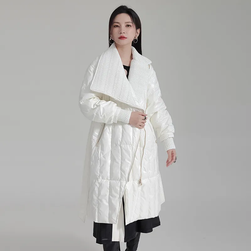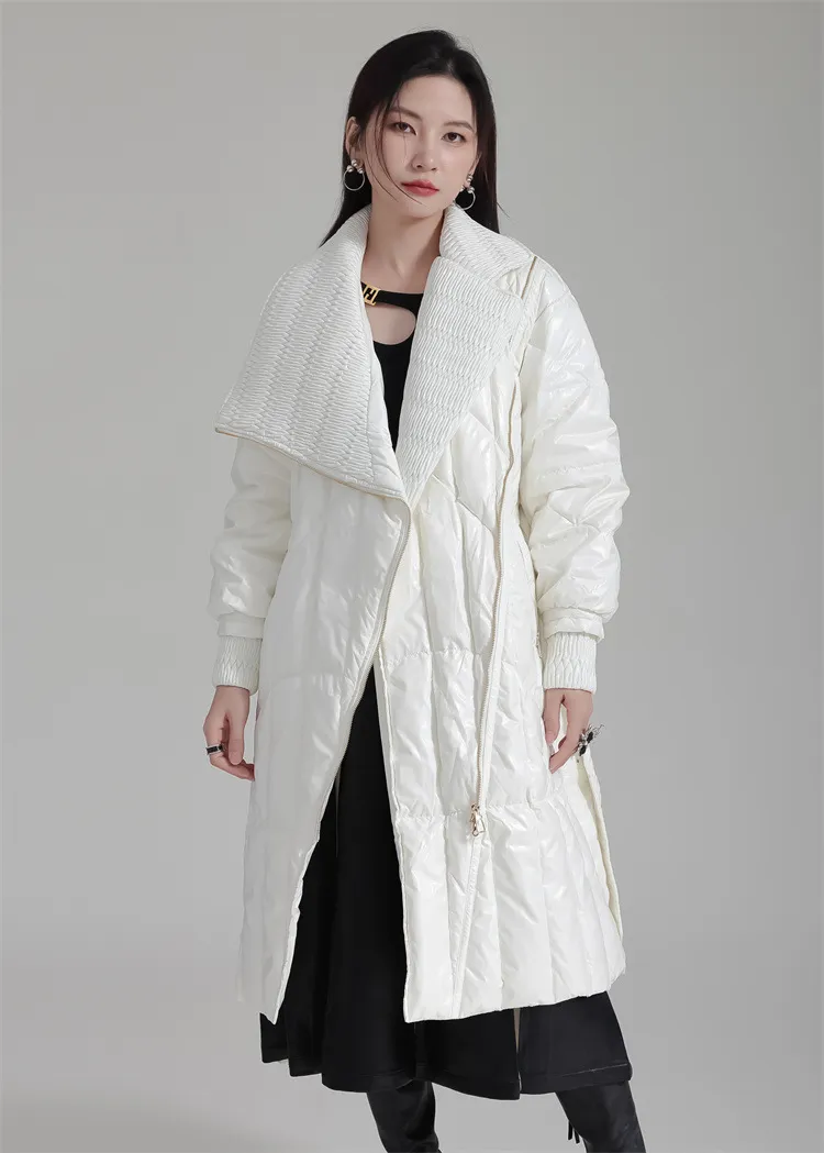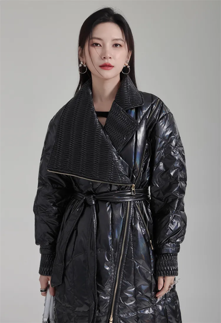 衣都精品- 2023新款設計感撞色繫帶拉鍊羽絨外套