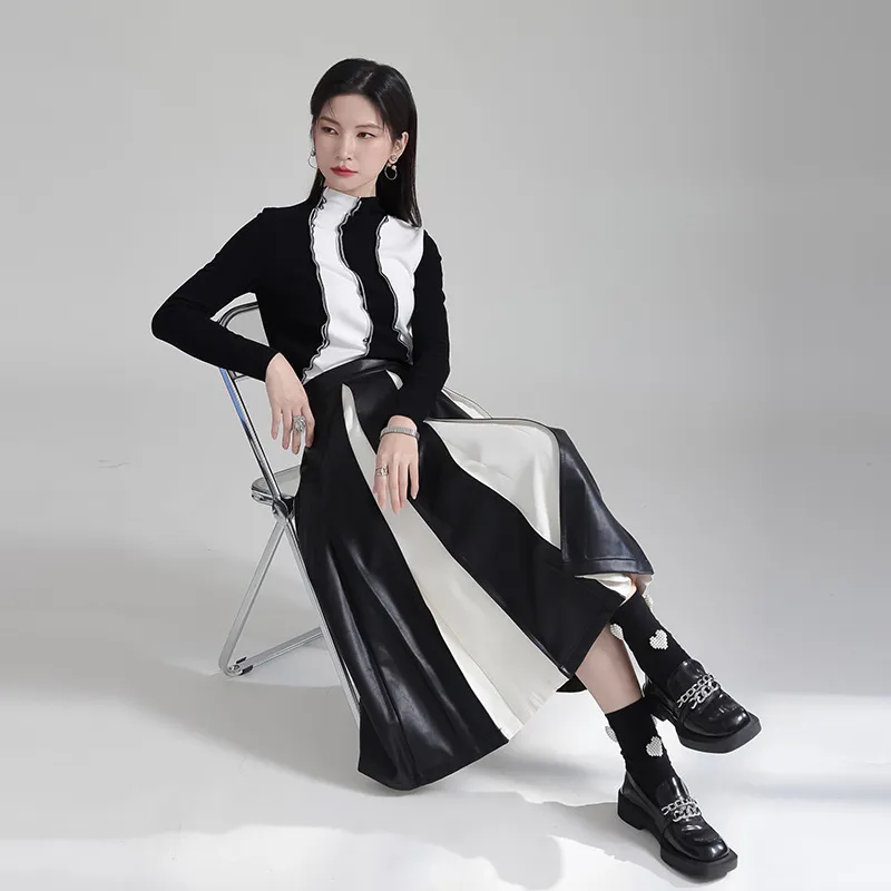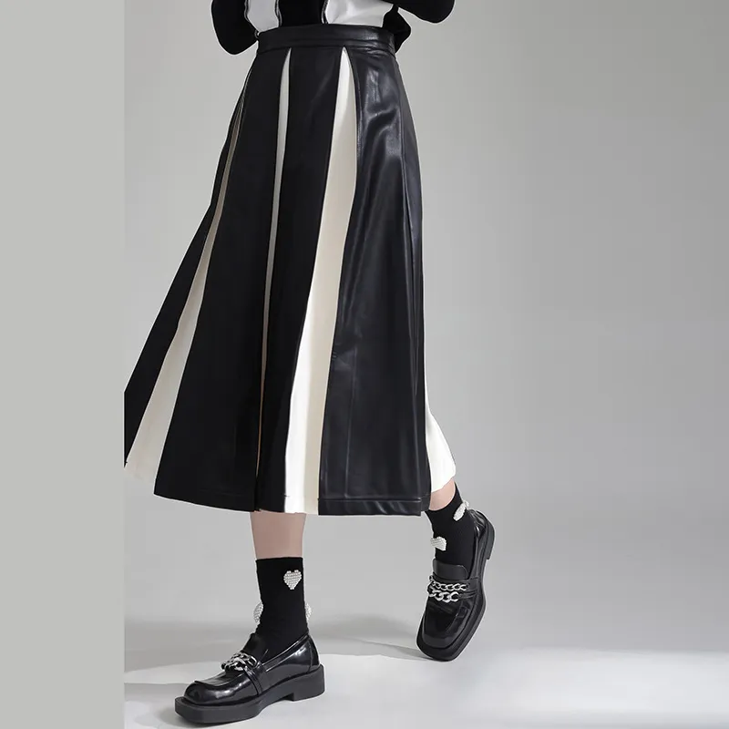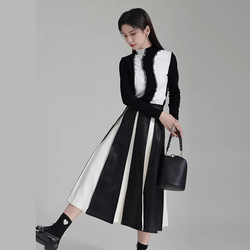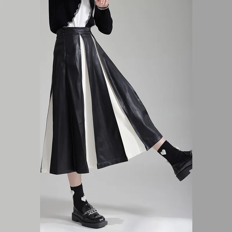衣都精品- 2023新款PU皮拼接百褶半身裙