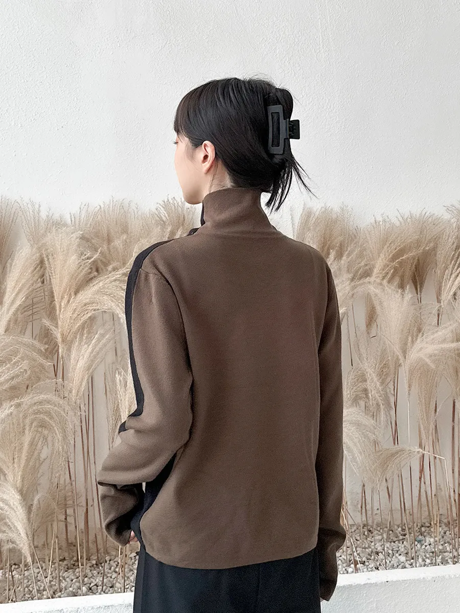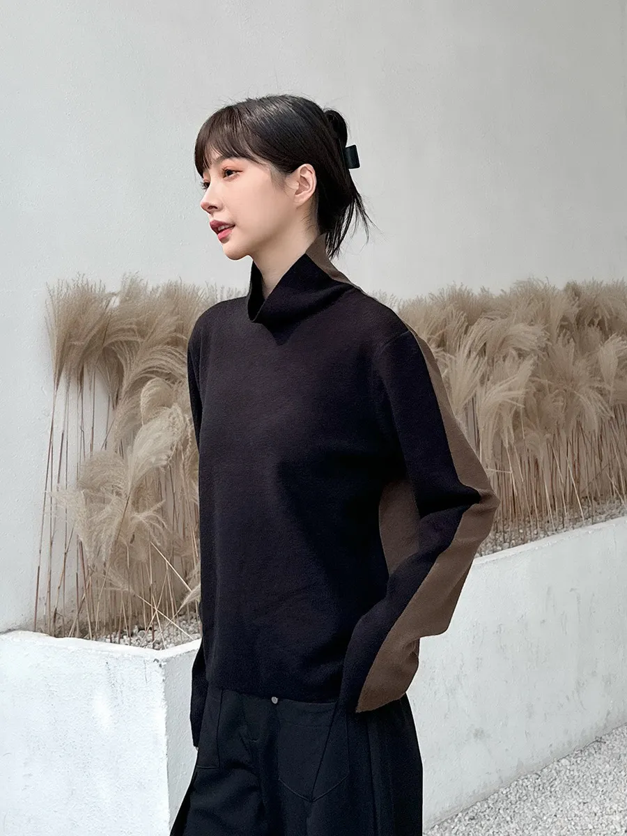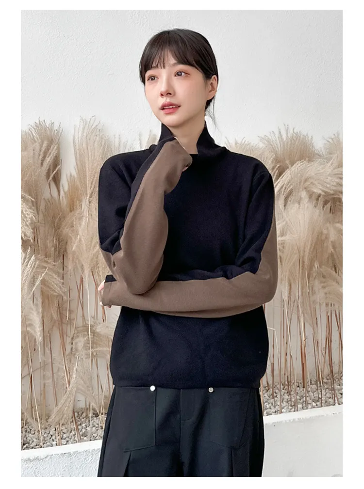 衣都精品- 2023新款兩面穿拼色高領寬鬆撞色上衣