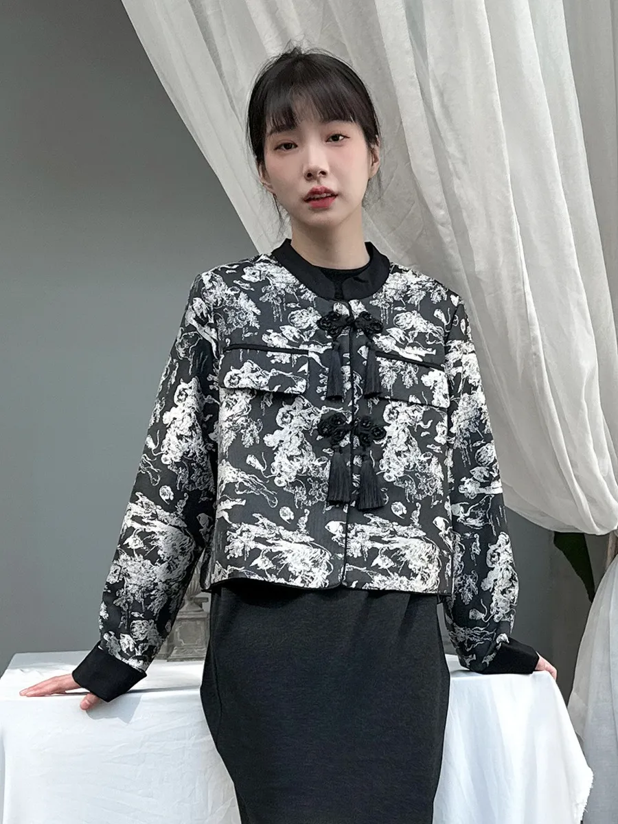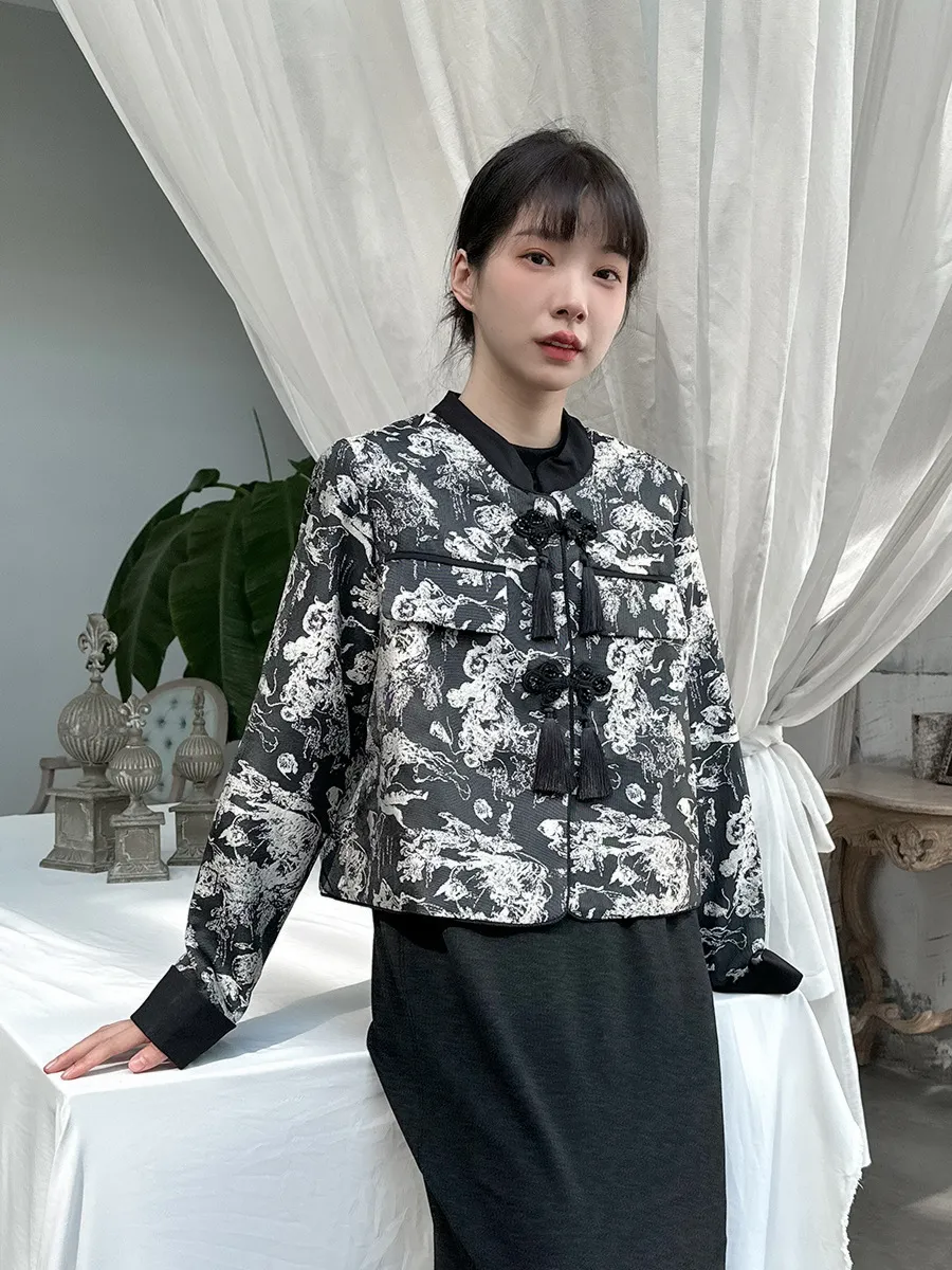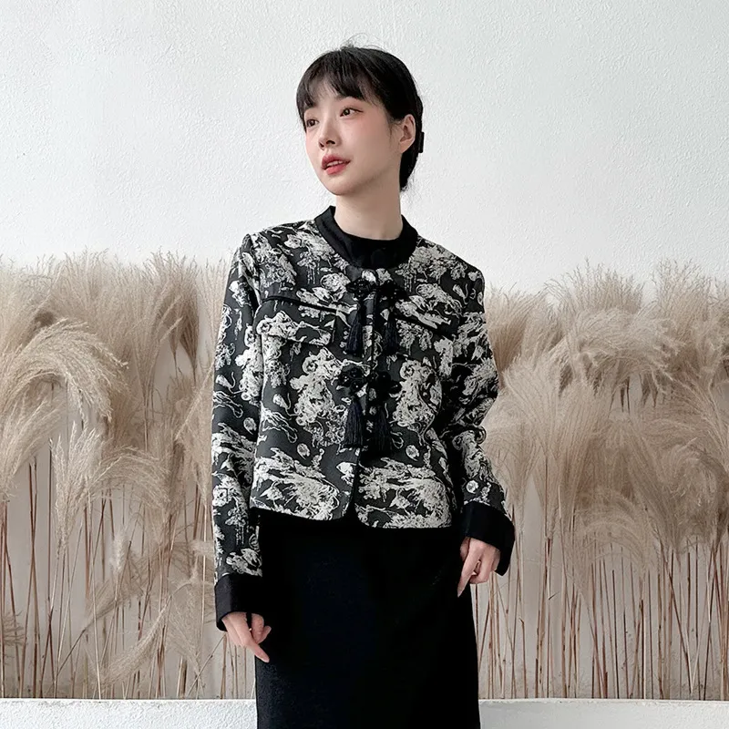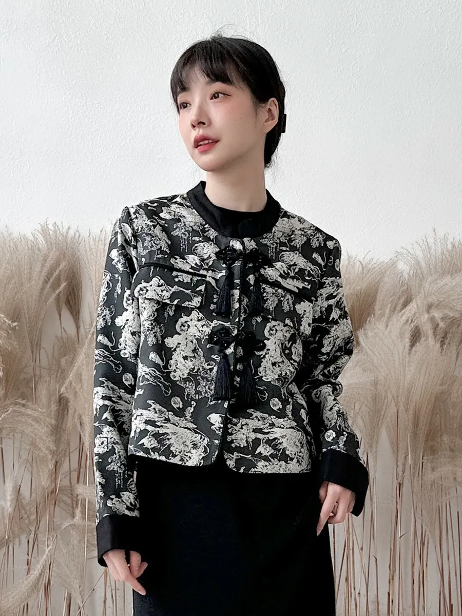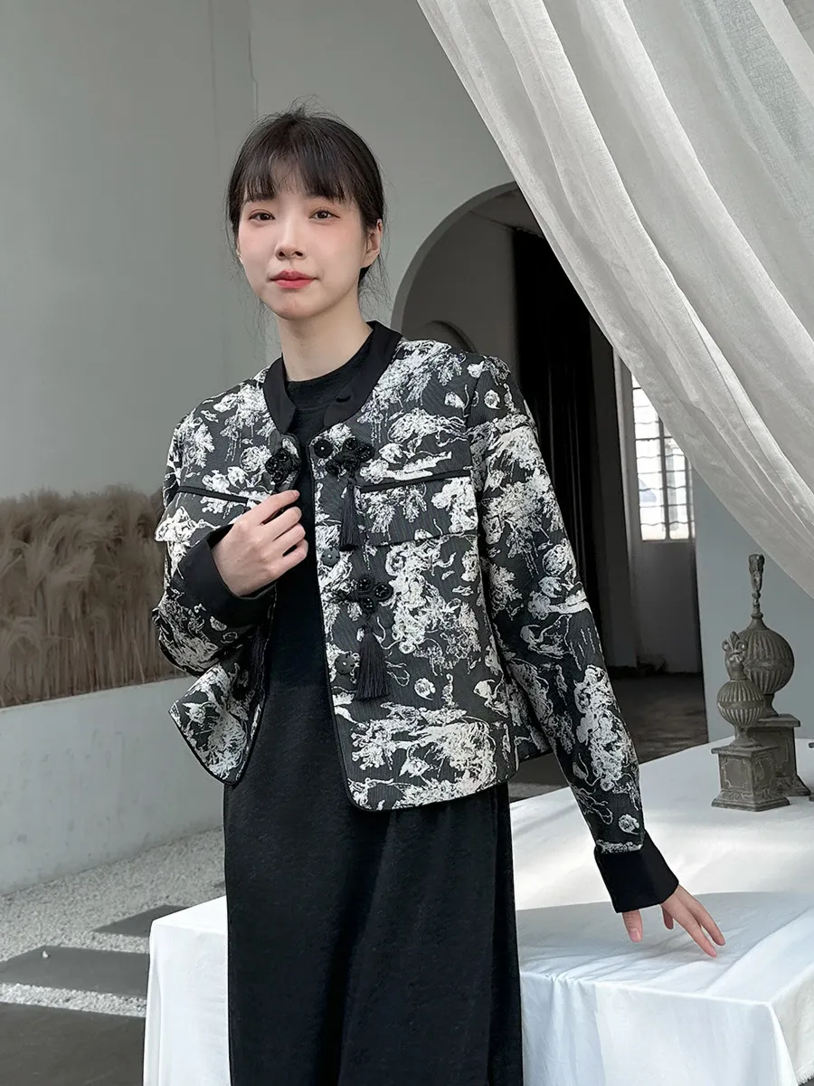 衣都精品- 2023新款中國風改良流蘇盤扣水墨印花外套
