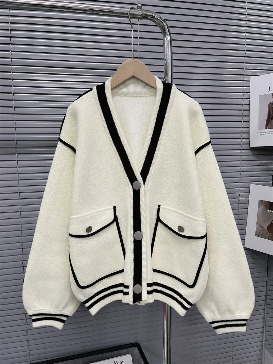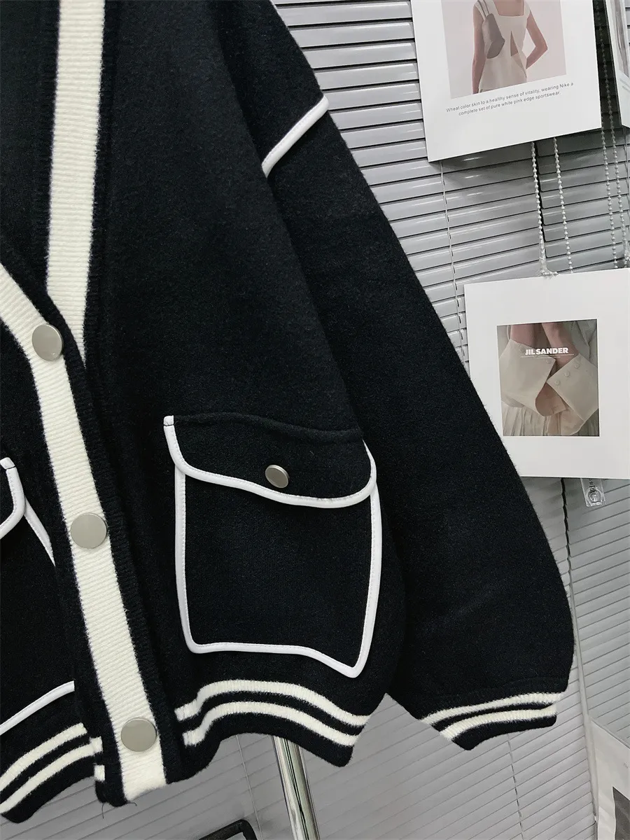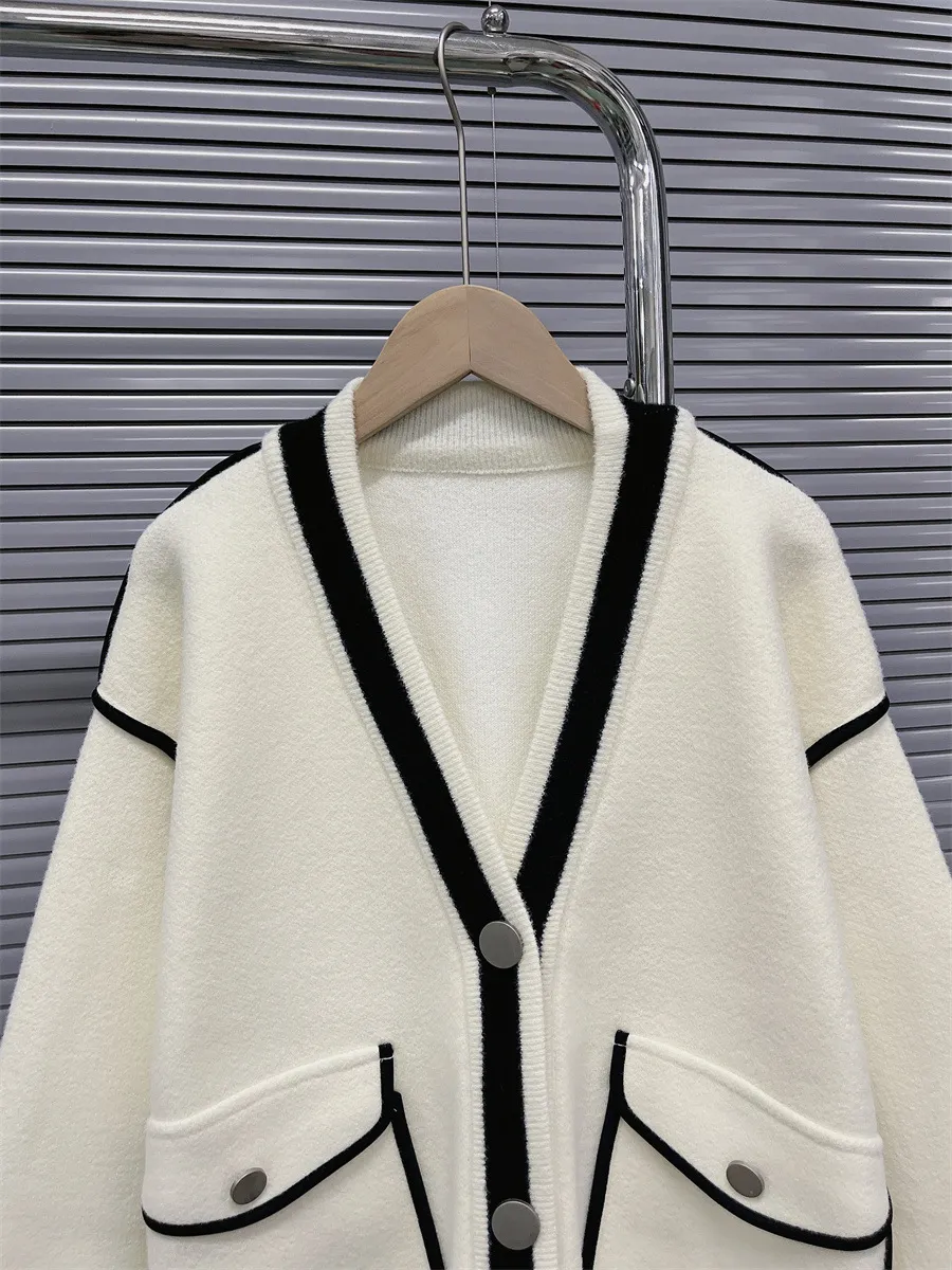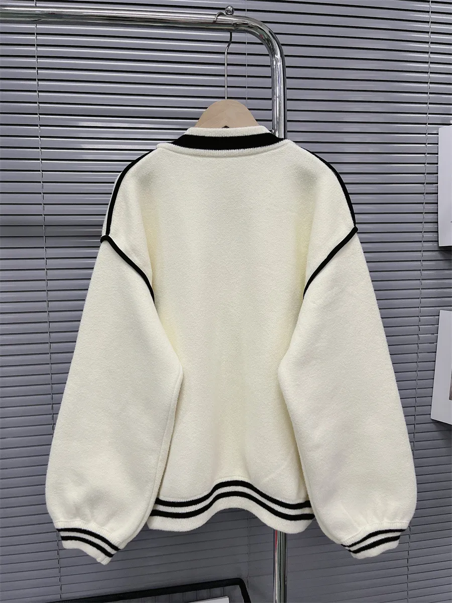 衣都精品- 2023新款高級撞色仿水貂絨毛呢毛衣外套