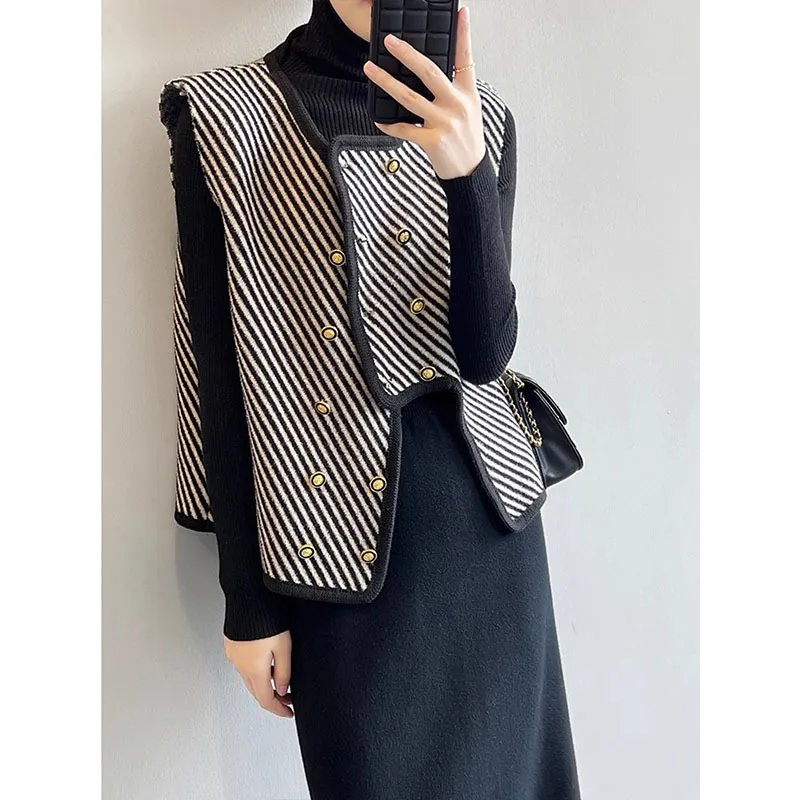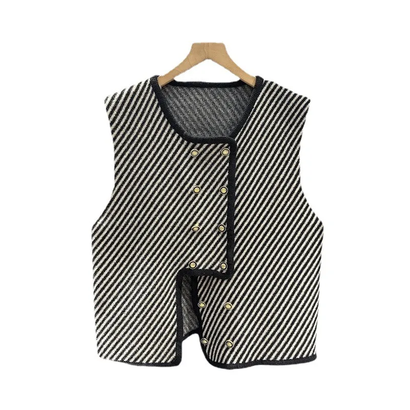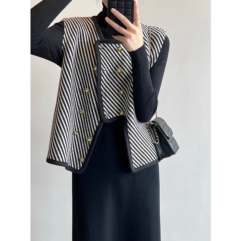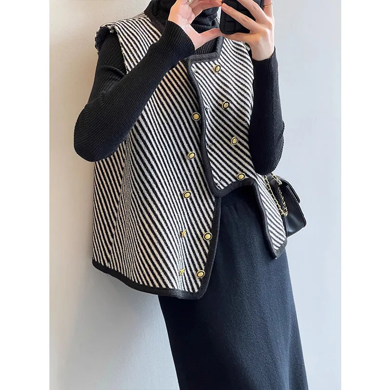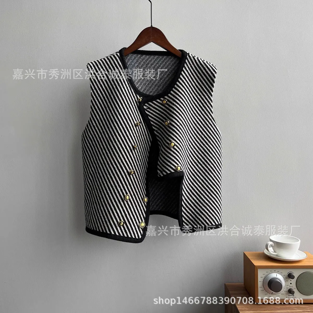 衣都精品- 2023新款斜條紋小香風不規則馬甲外套