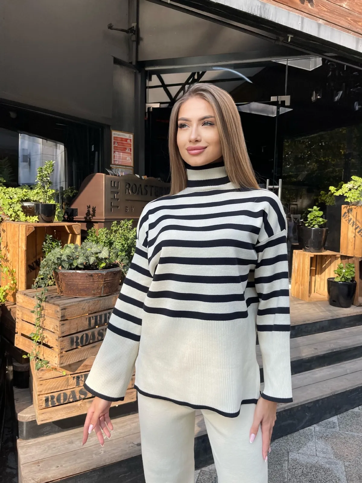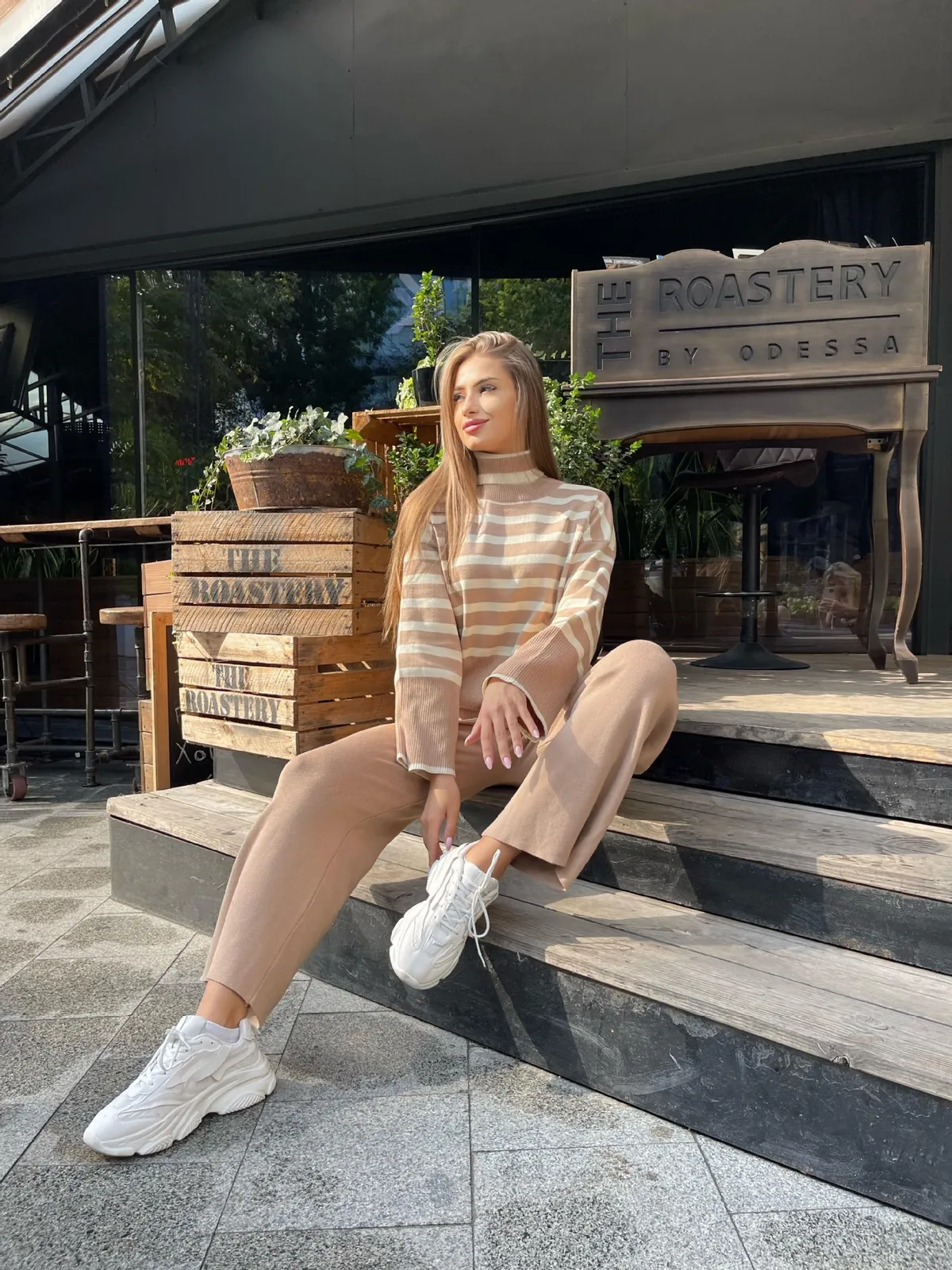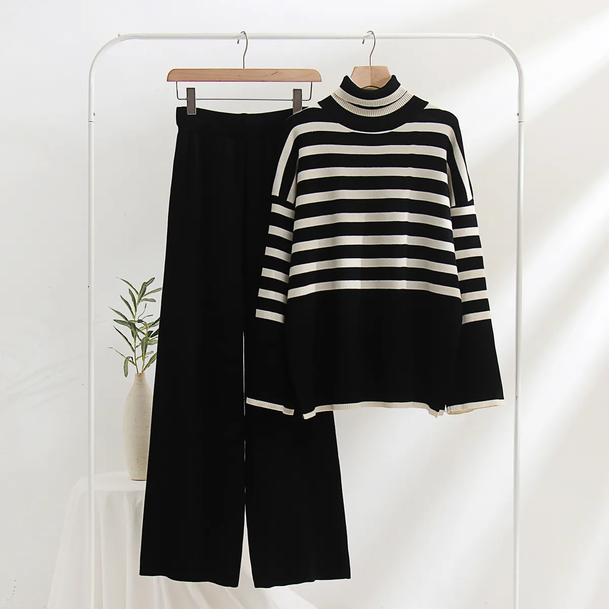 衣都精品- 2023新款高領厚款毛衣寬鬆休閒上衣+長褲兩件式套裝