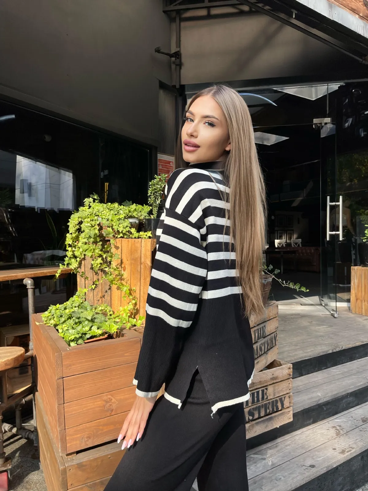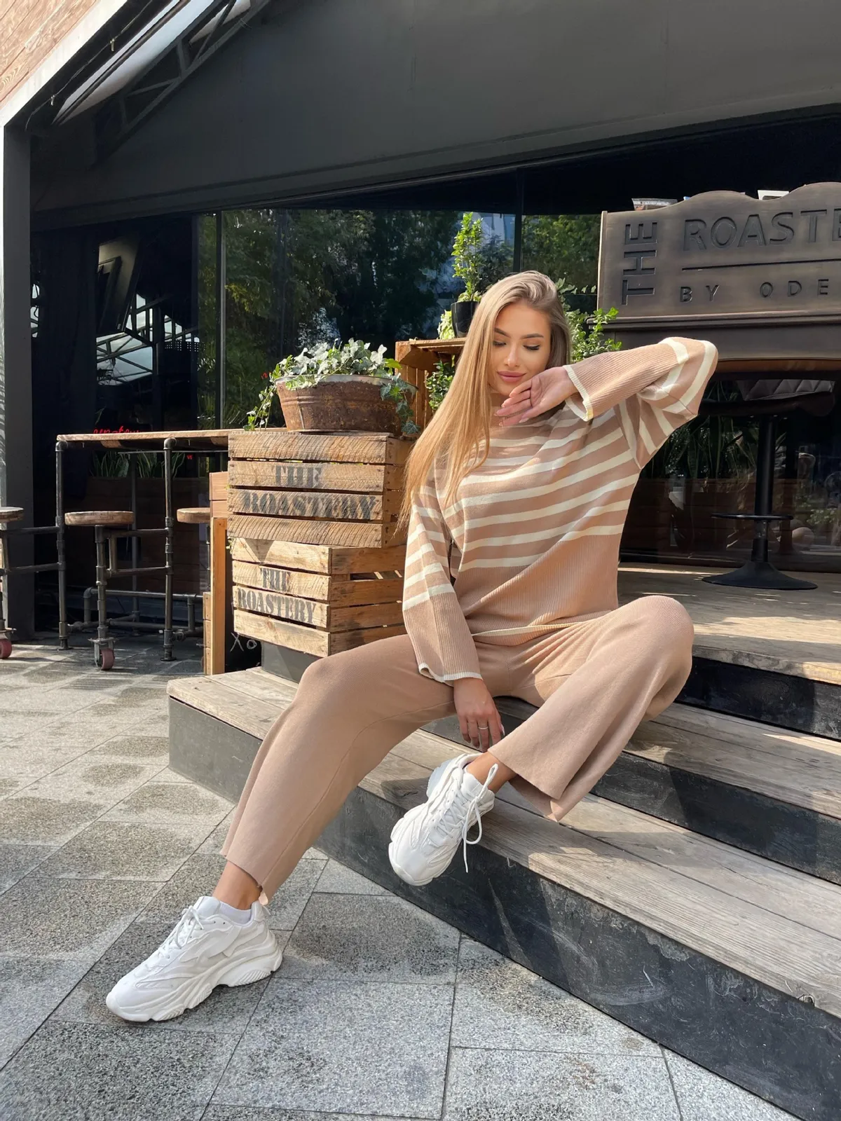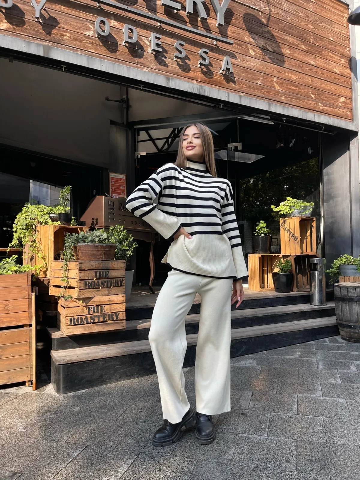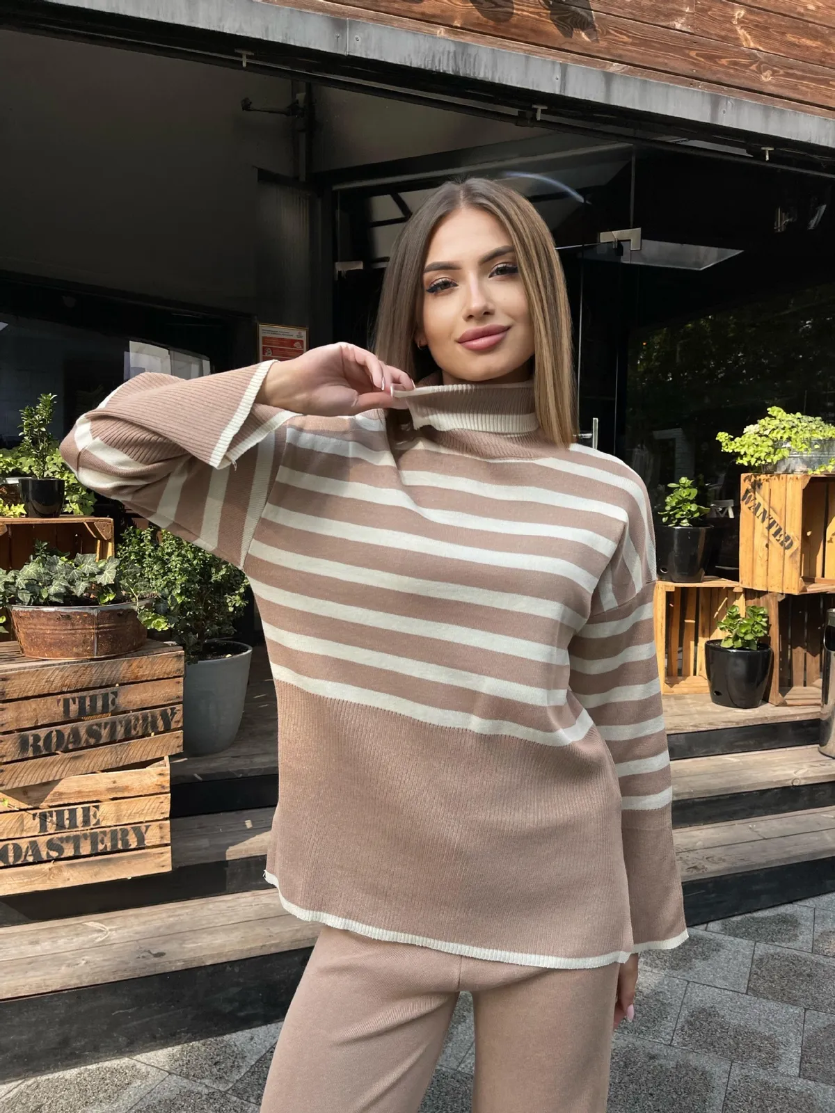 衣都精品- 2023新款高領厚款毛衣寬鬆休閒上衣+長褲兩件式套裝