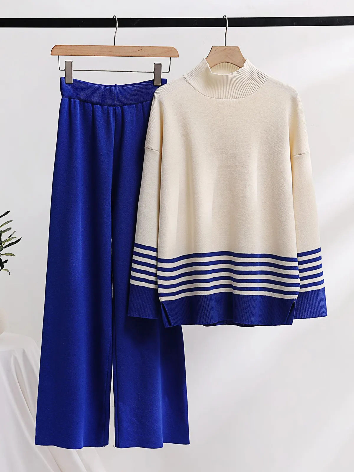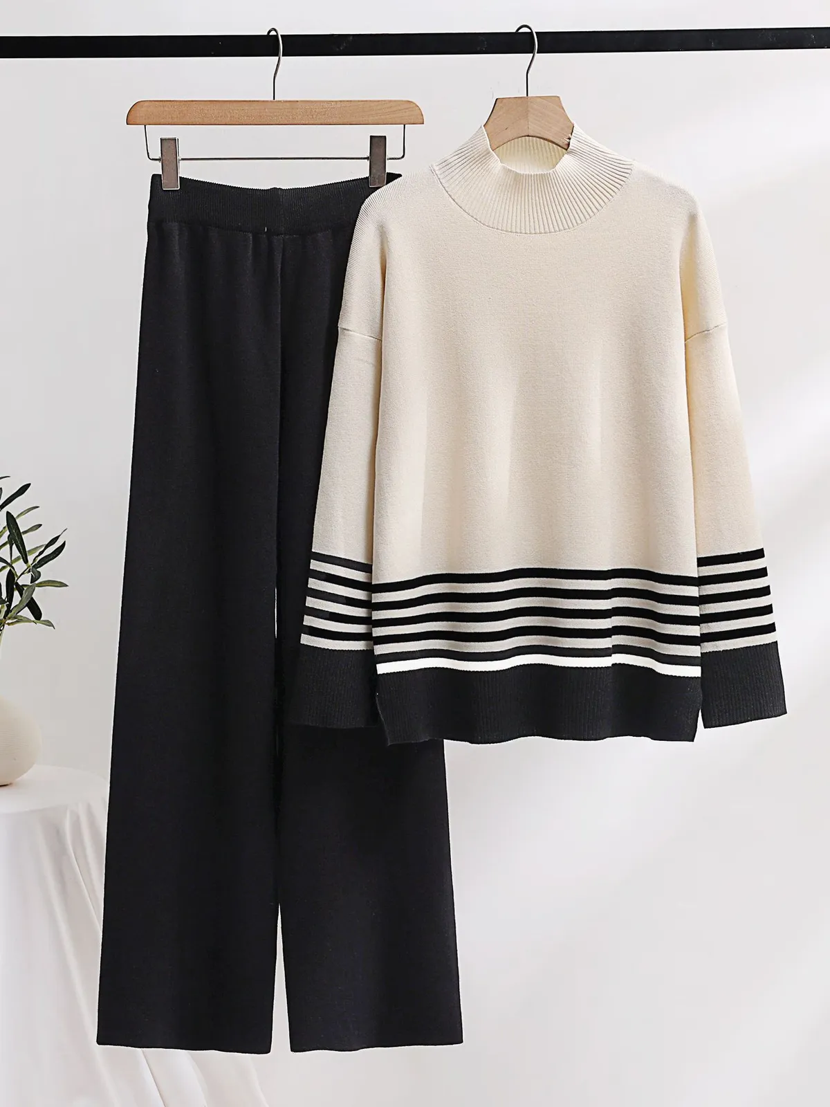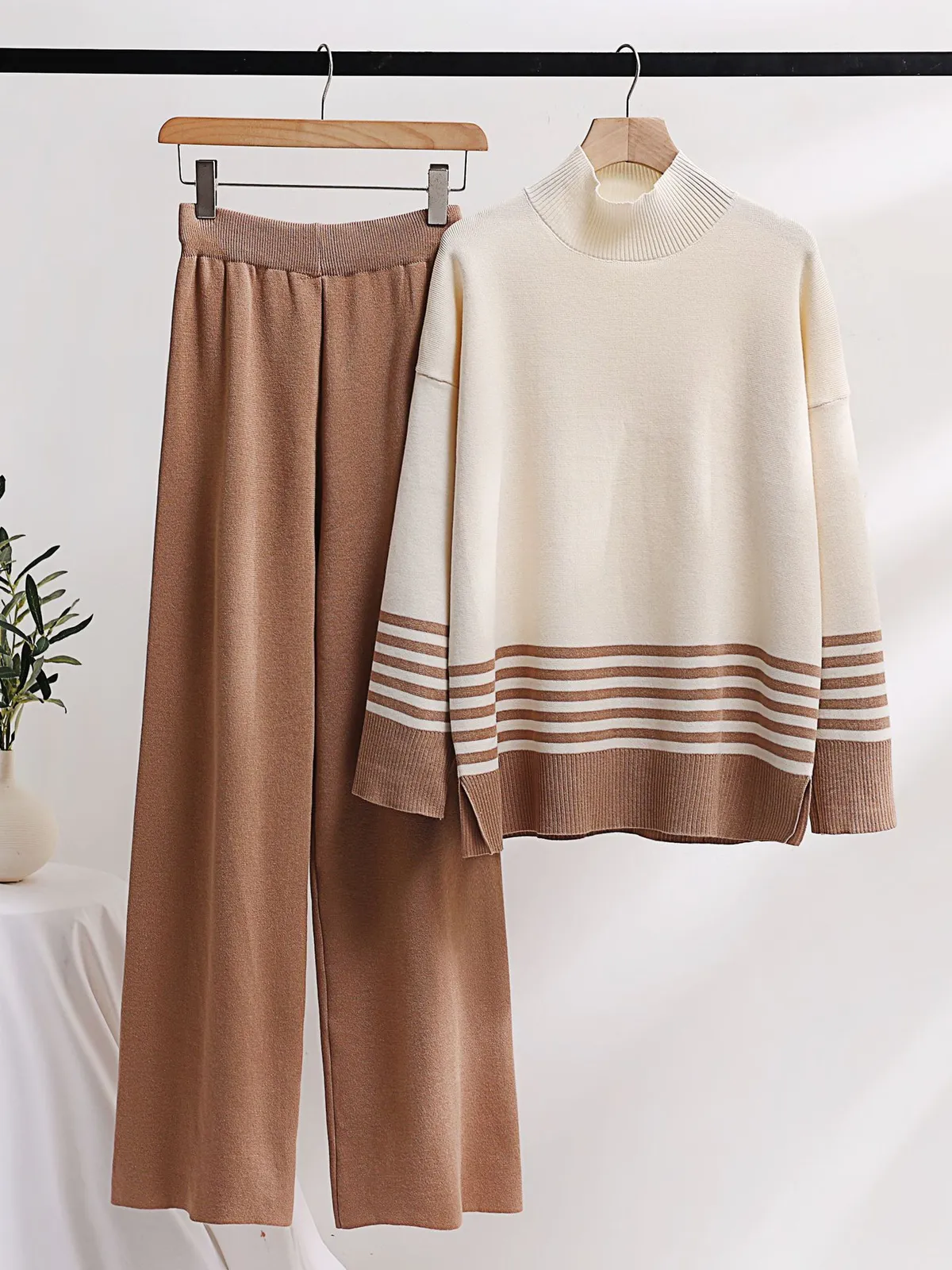 衣都精品- 2023新款高領厚款毛衣寬鬆休閒上衣+長褲兩件式套裝