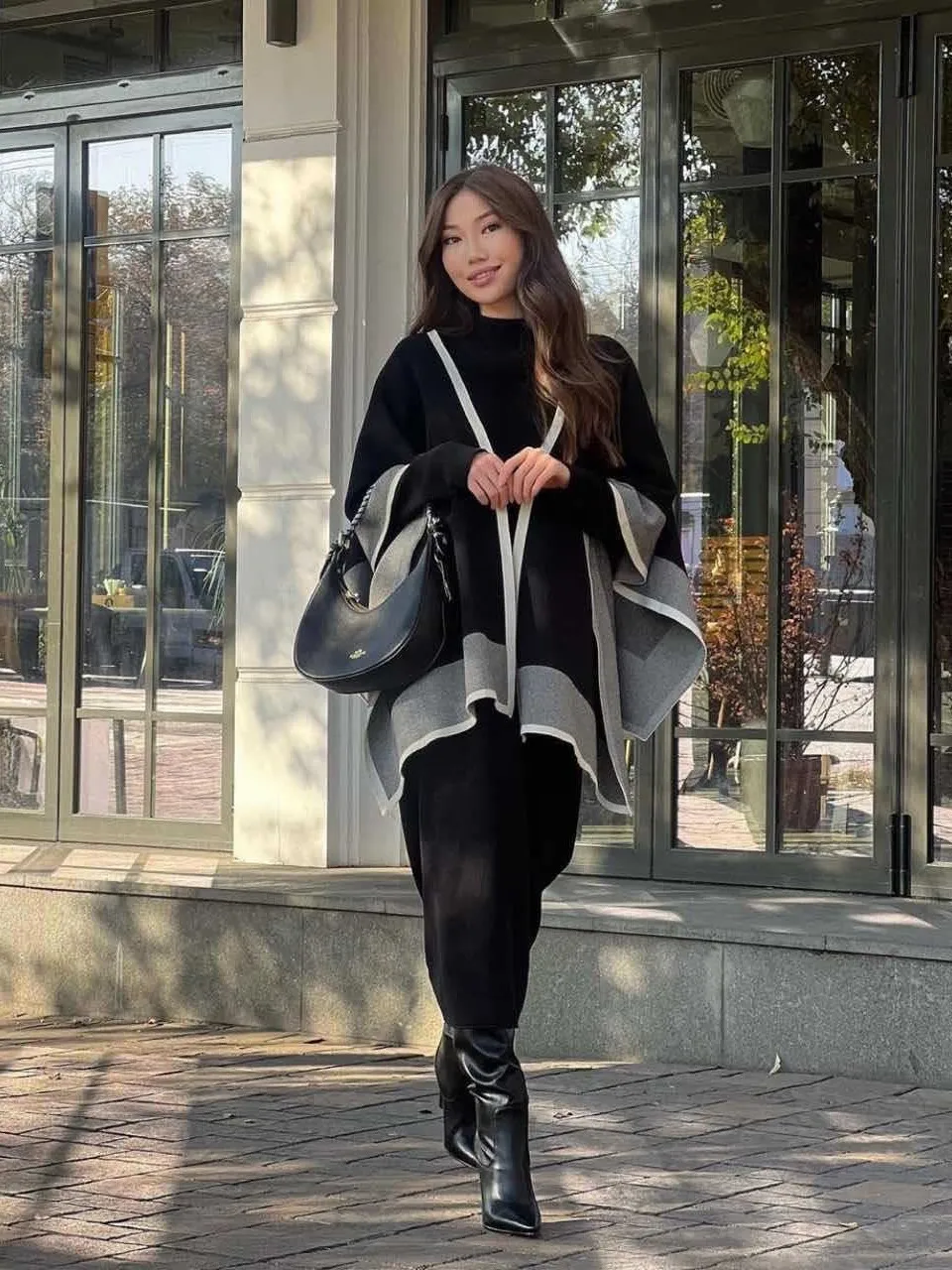 衣都精品- 2023新款高領厚款毛衣寬鬆休閒上衣+長褲兩件式套裝