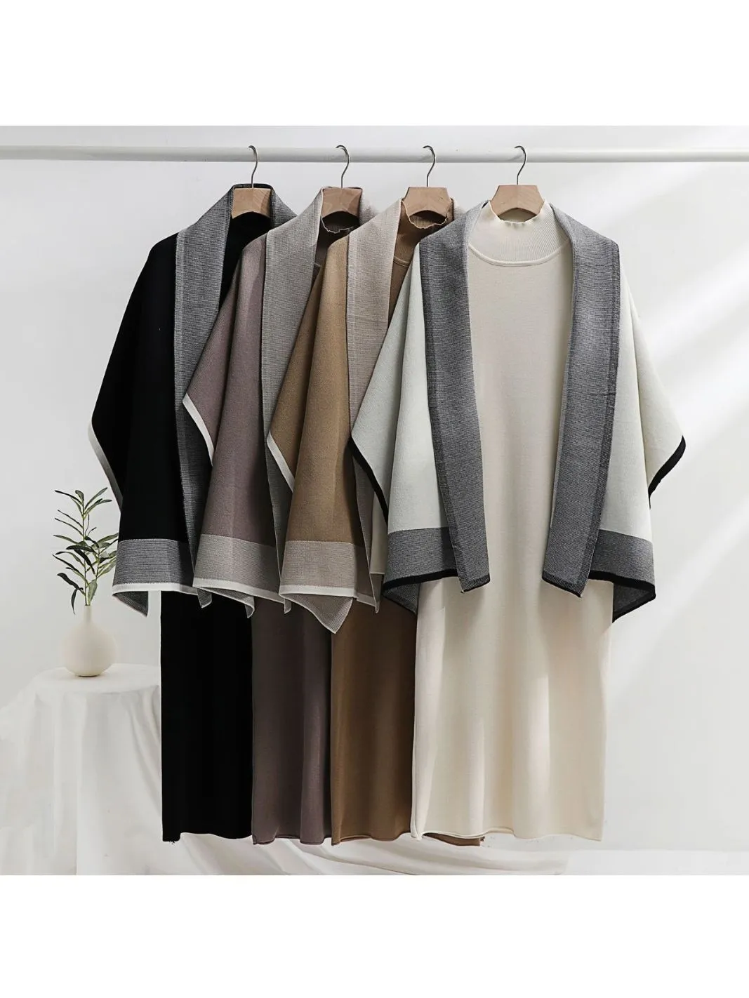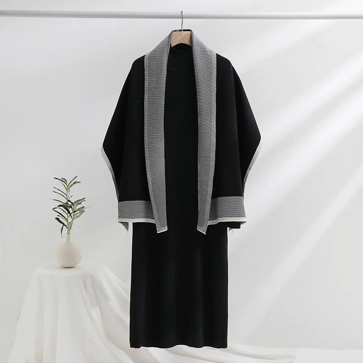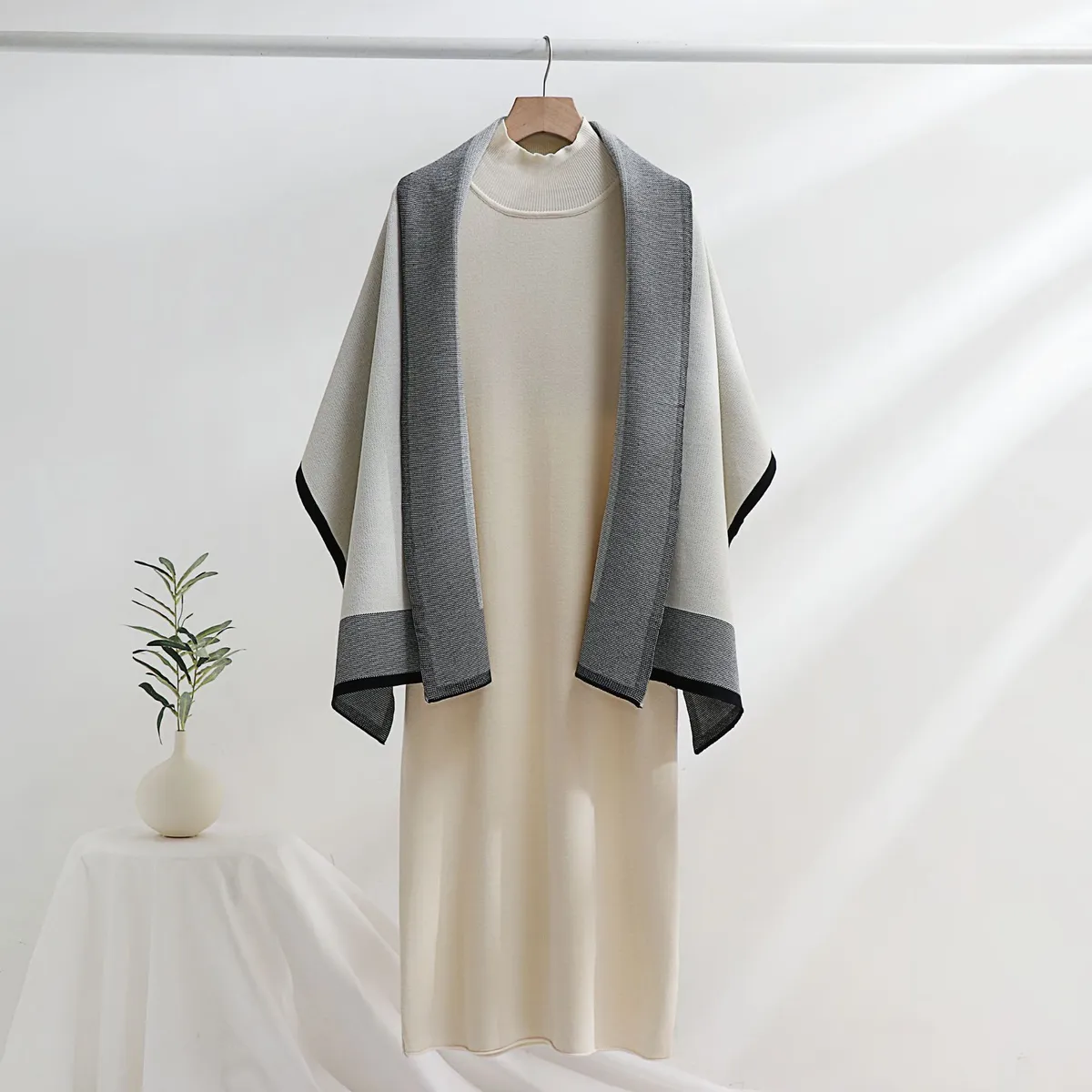 衣都精品- 2023新款大碼寬鬆氣質連衣裙+披肩外套兩件式套裝