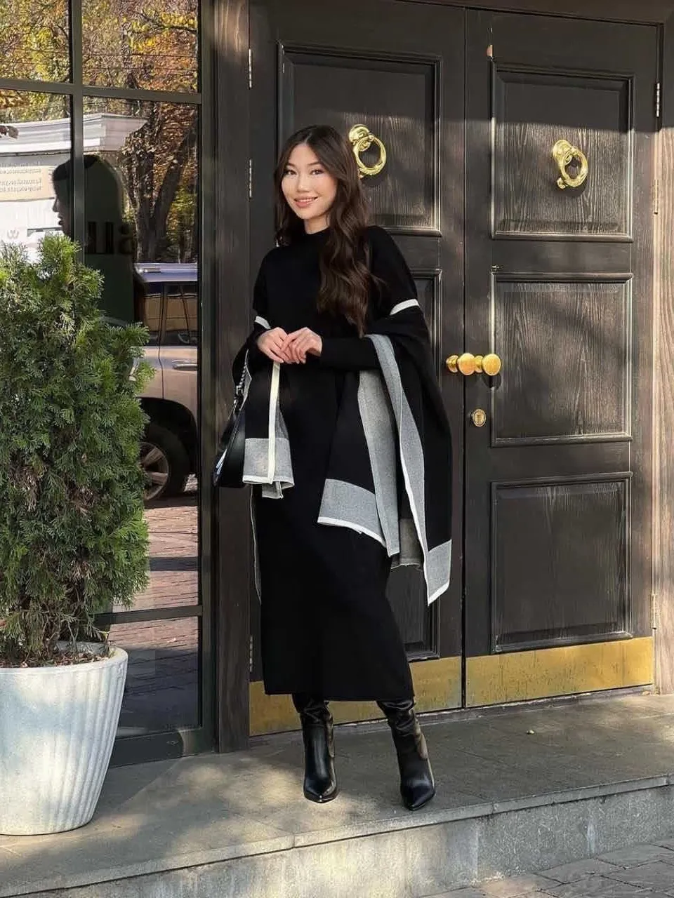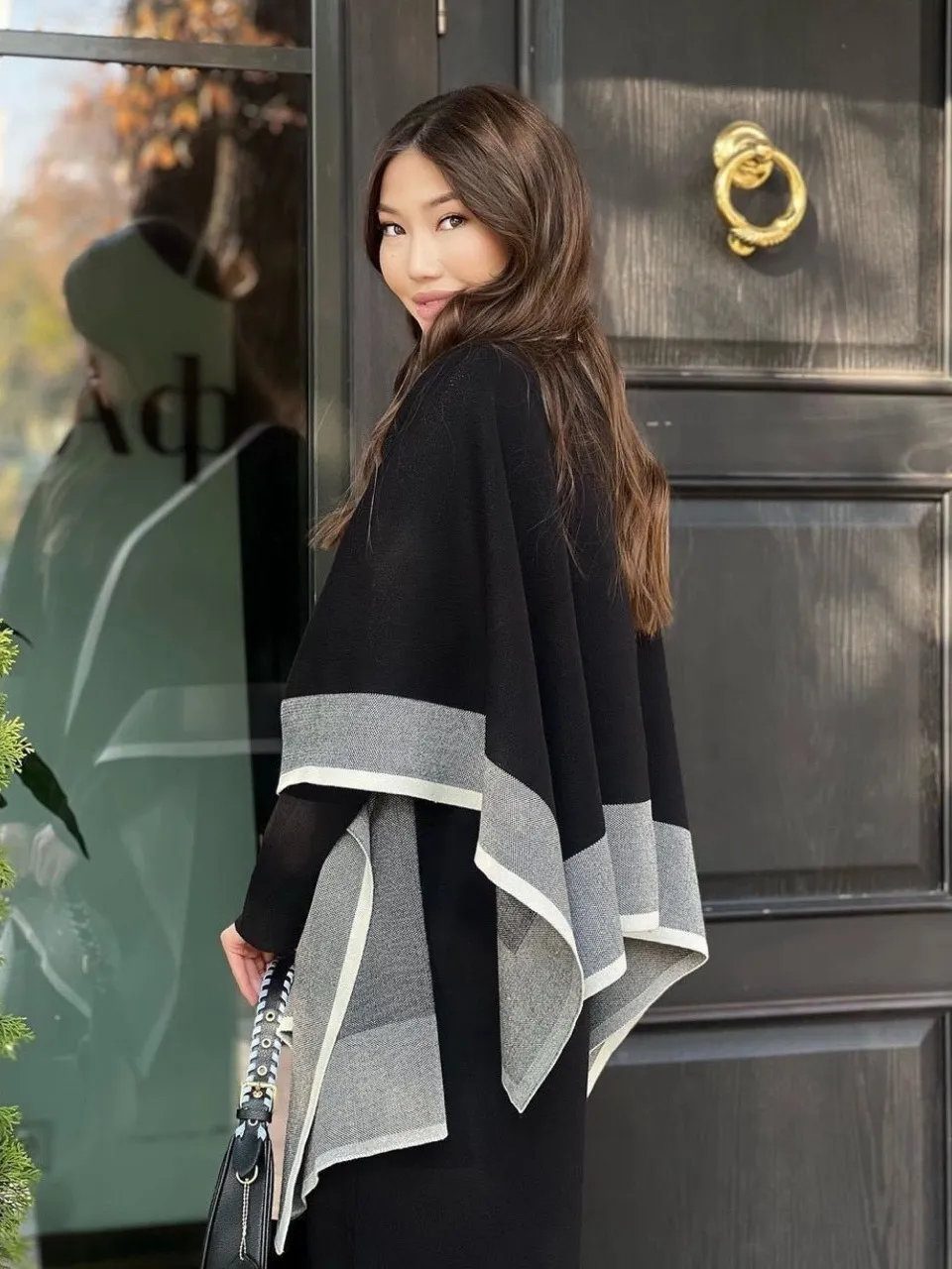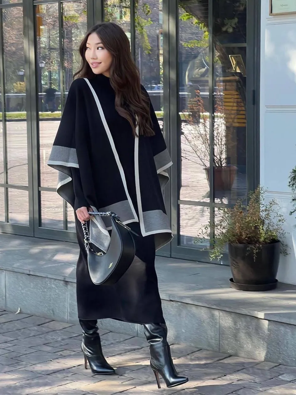 衣都精品- 2023新款大碼寬鬆氣質連衣裙+披肩外套兩件式套裝