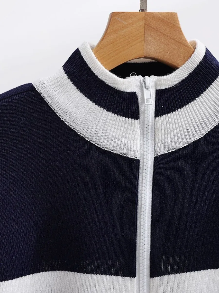 衣都精品- 2023新款半高領長袖撞色拼接圓領上衣+長褲兩件式套裝