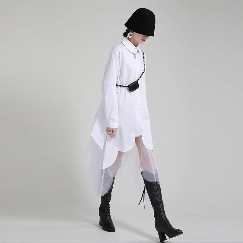 衣都精品- 2023新款不規則大擺拼接網紗長袖上衣