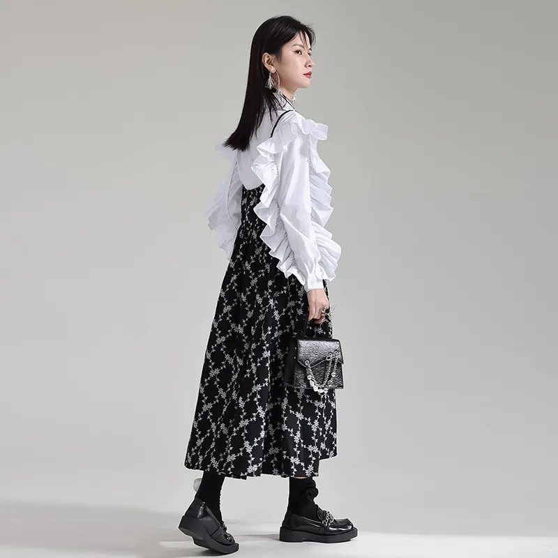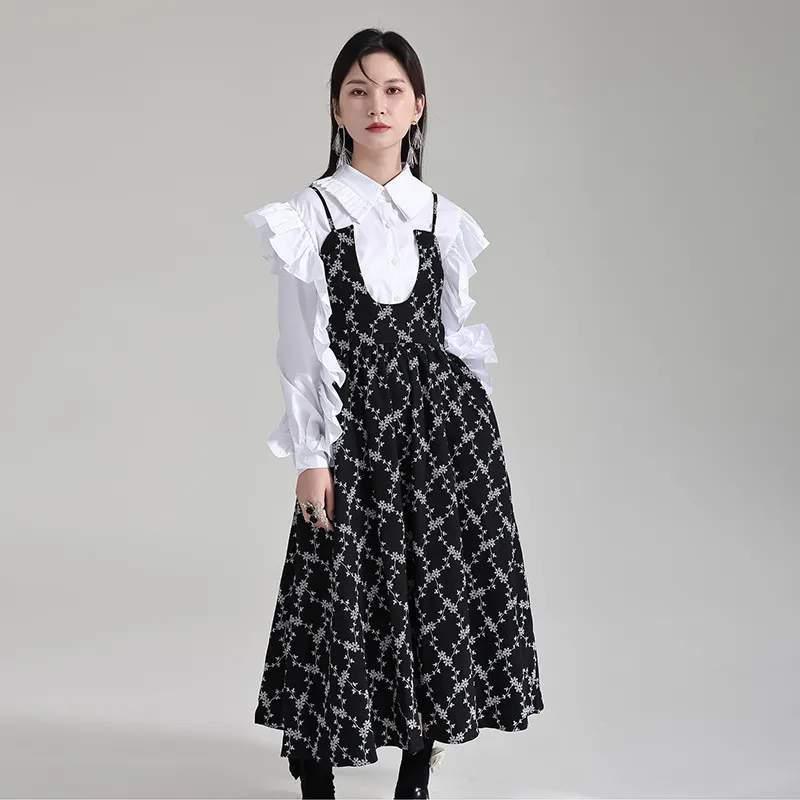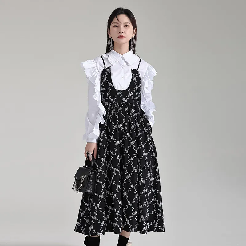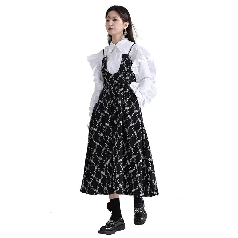 衣都精品- 2023新款法式碎花吊帶連衣裙+長袖上衣兩件式套裝