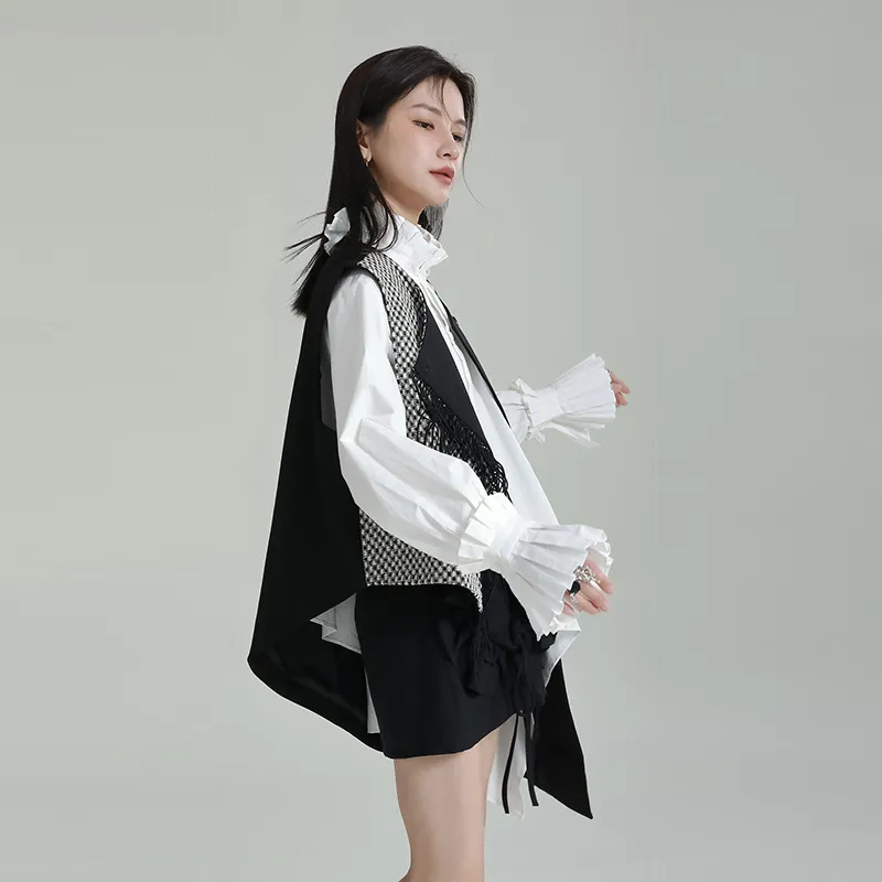 衣都精品- 2023新款飄帶針織背心馬甲+荷葉邊襯衫連衣裙兩件式套裝
