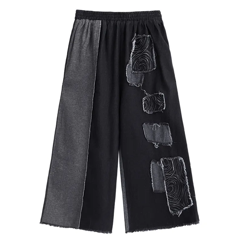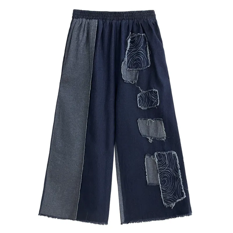衣都精品- 2023新款水洗撞色寬鬆時尚洋氣休閒寬褲