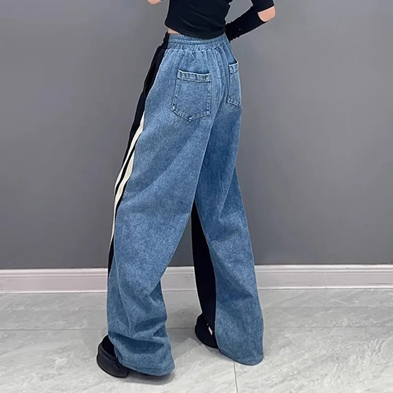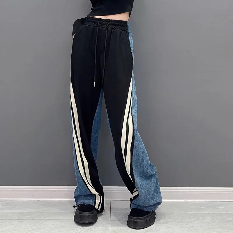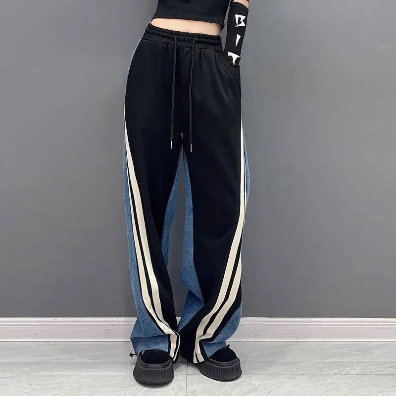 衣都精品- 2023新款水洗撞色寬鬆時尚洋氣休閒寬褲