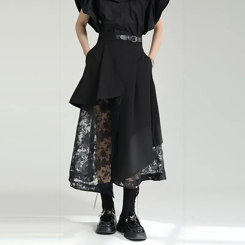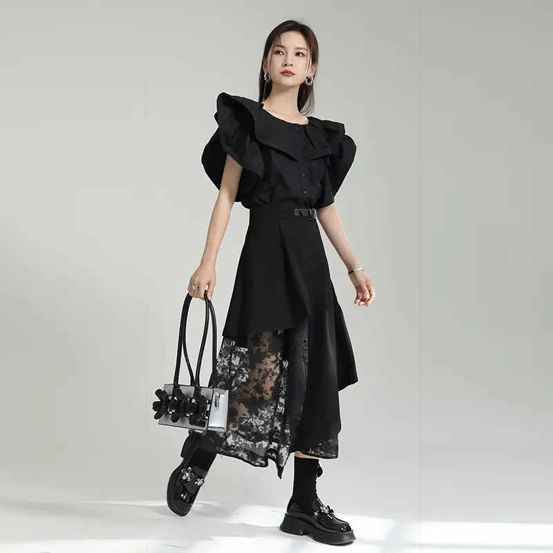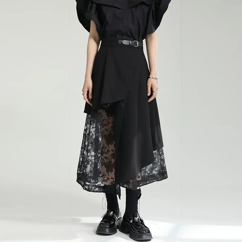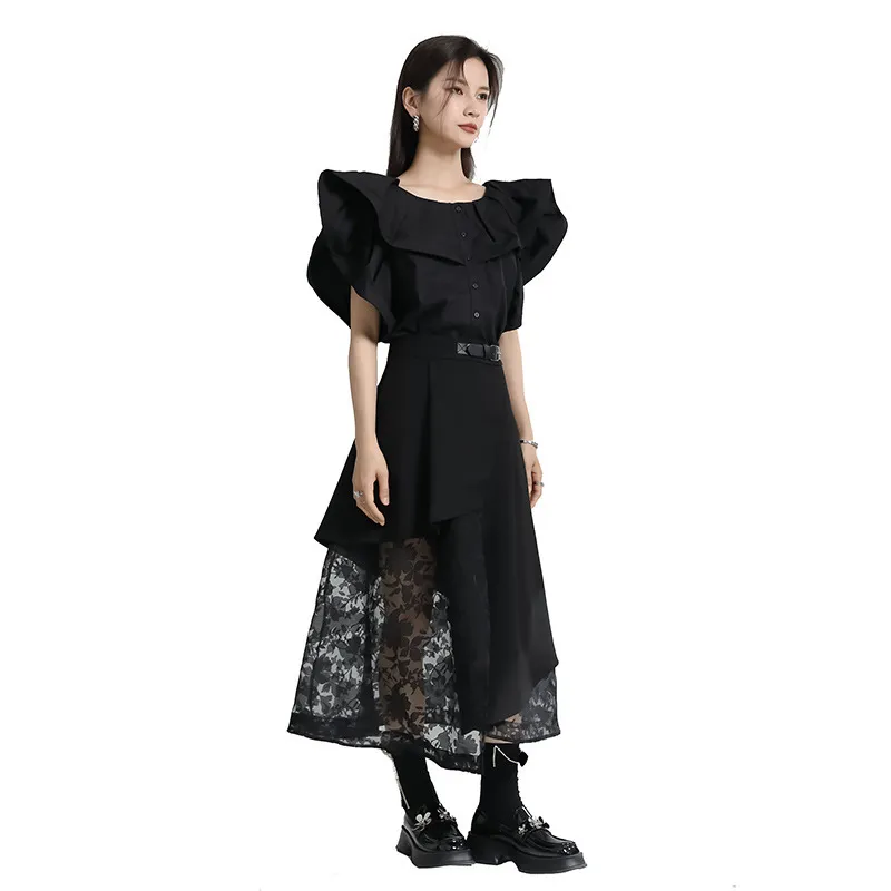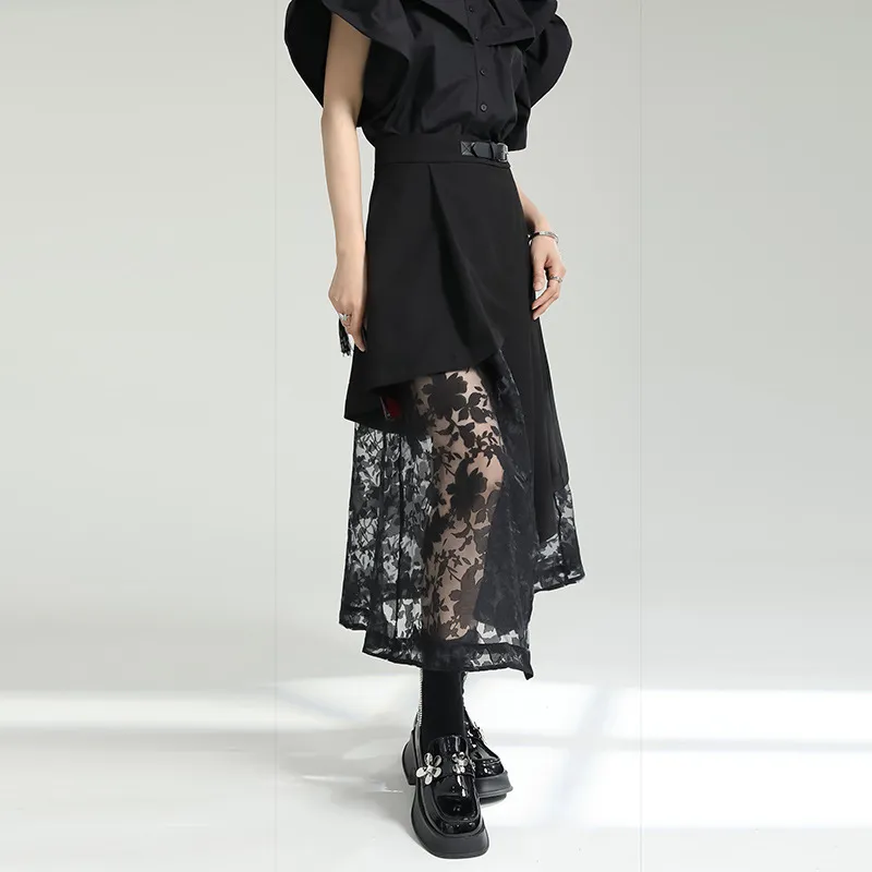 衣都精品- 2023新款高腰不規則拼接紗網半身裙