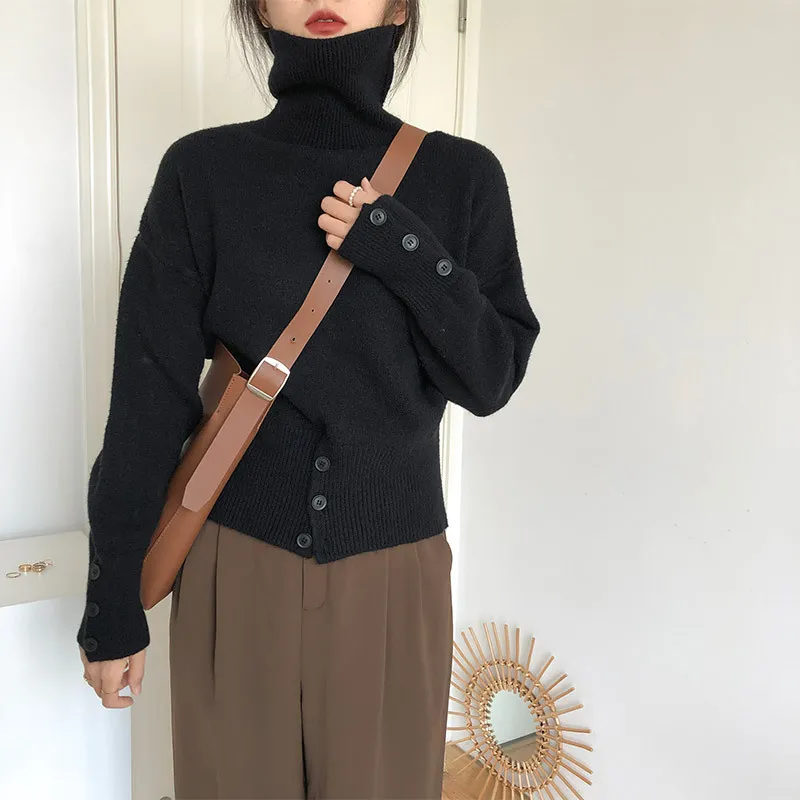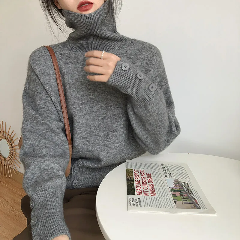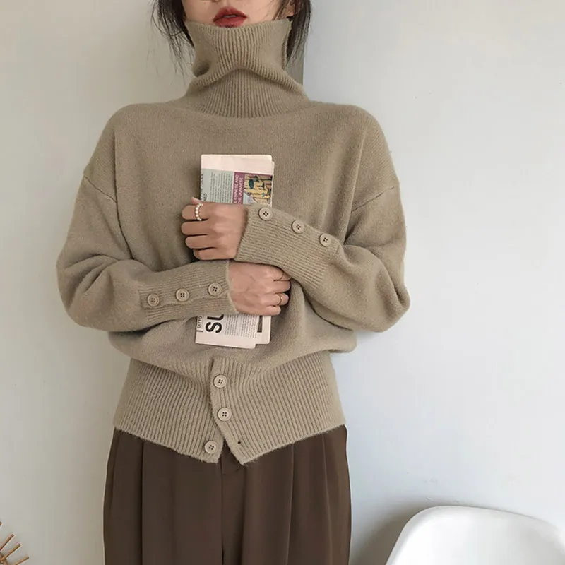 衣都精品- 2023新款復古慵懶風韓系套頭高領上衣