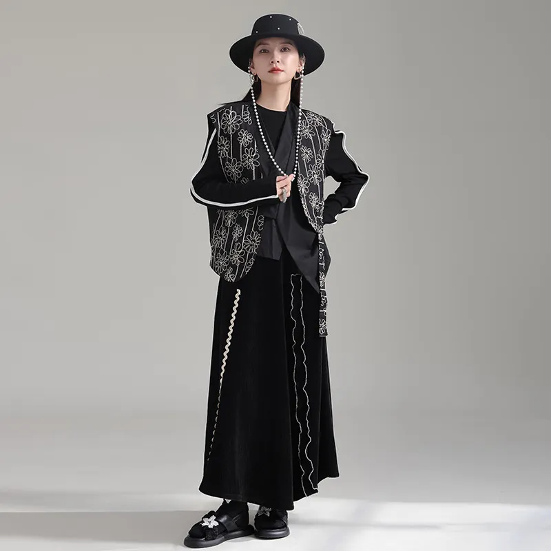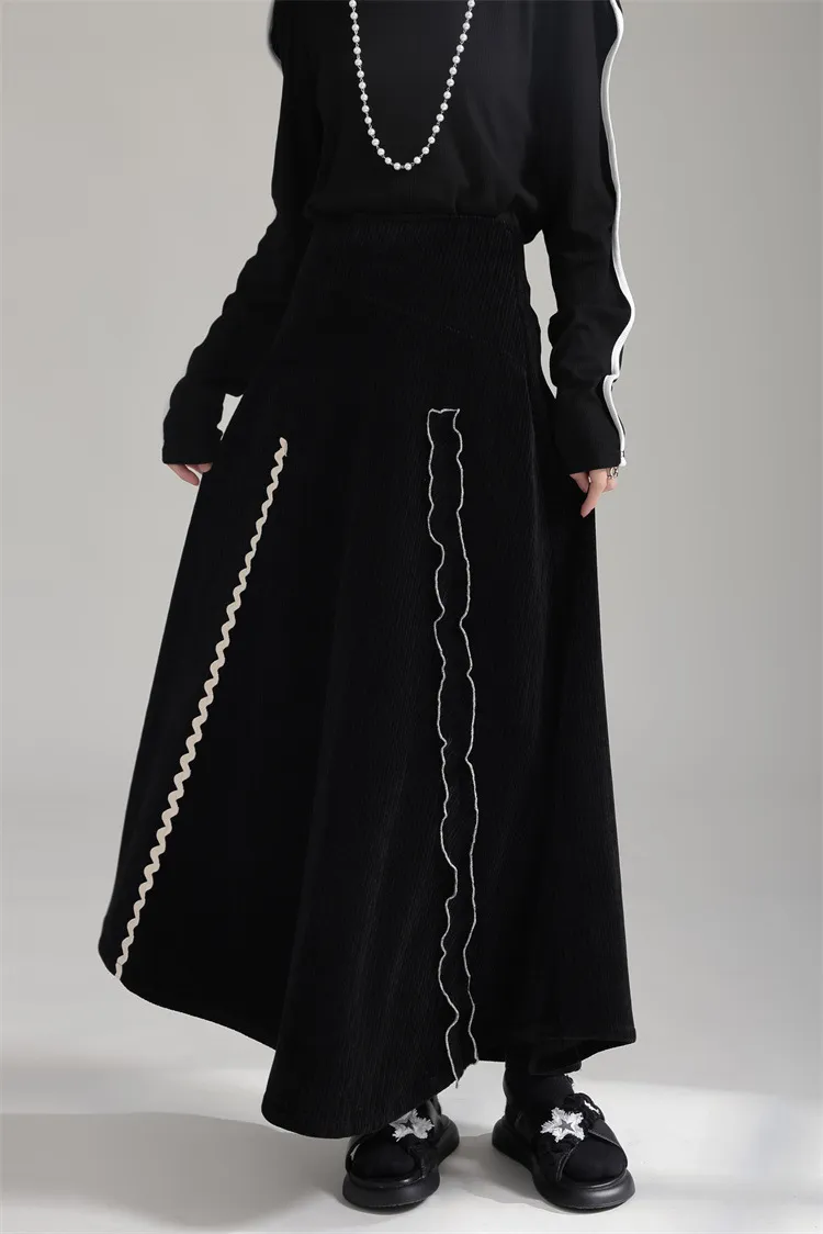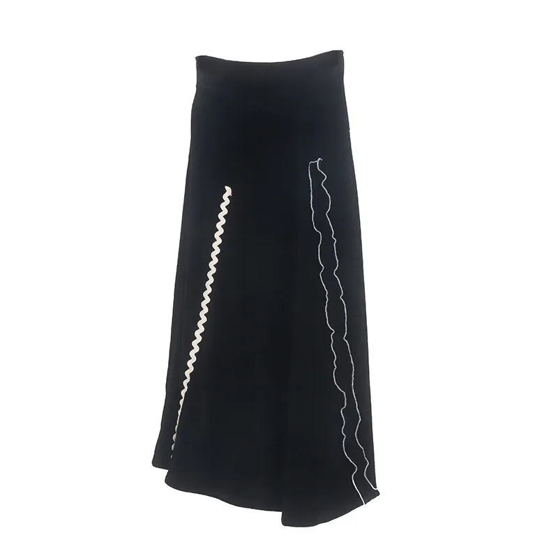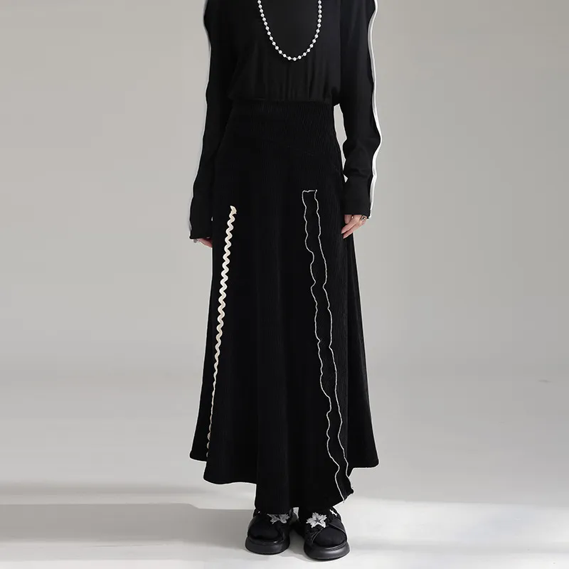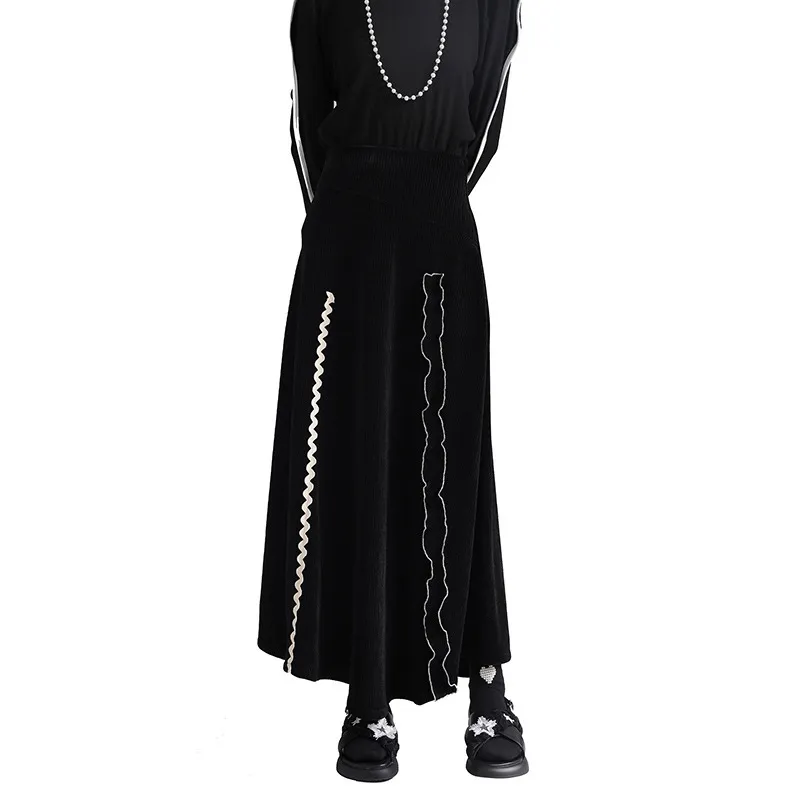 衣都精品- 2023新款高腰A字垂墜感不規則撞色半身裙