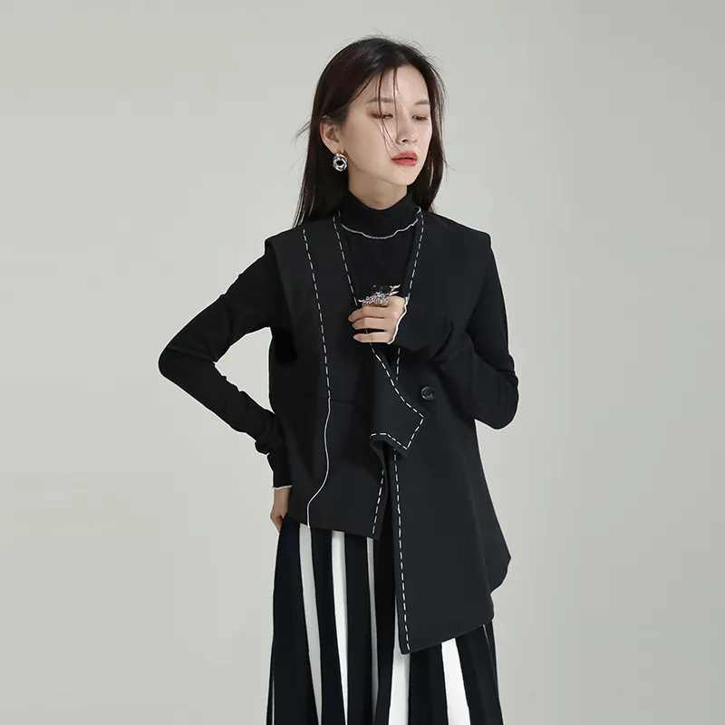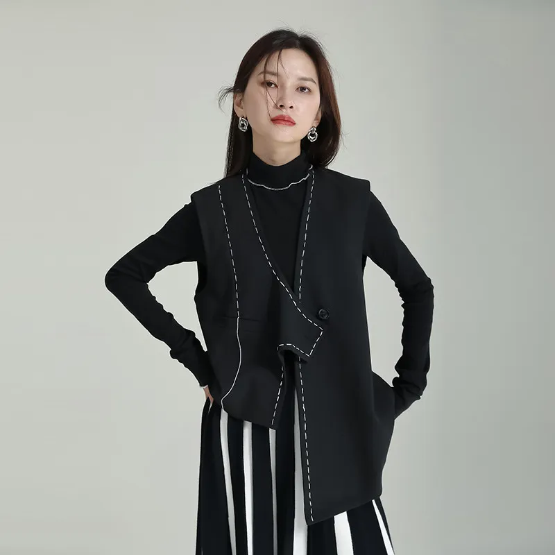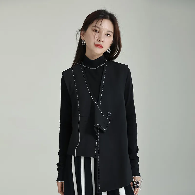 衣都精品- 2023新款不規則明線設計一粒扣馬甲上衣