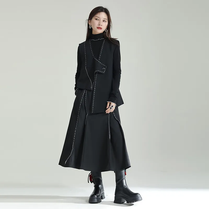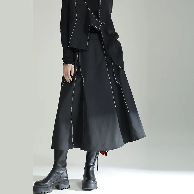 衣都精品- 2023新款暗黑風明線大擺不規則半身裙