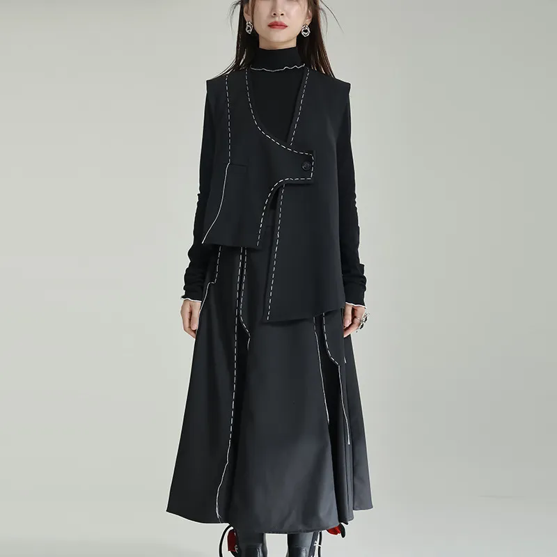 衣都精品- 2023新款不規則明線設計一粒扣馬甲上衣