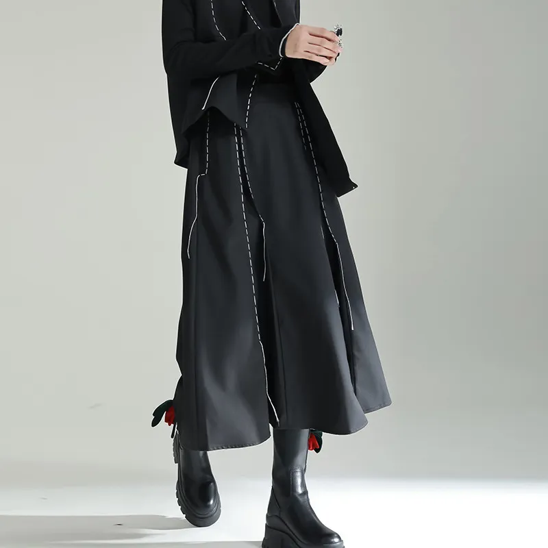 衣都精品- 2023新款暗黑山本風不規則開叉設計半身裙