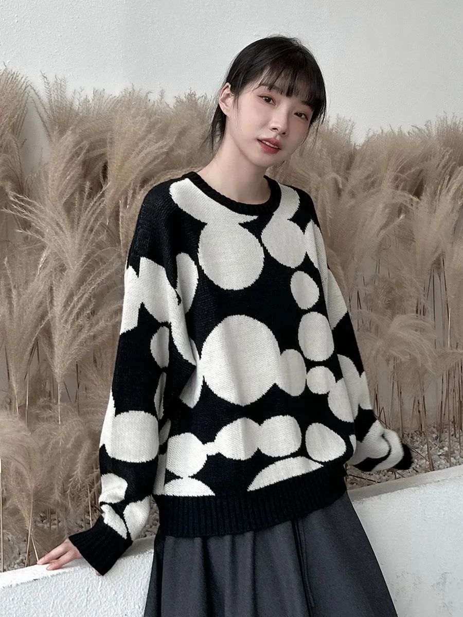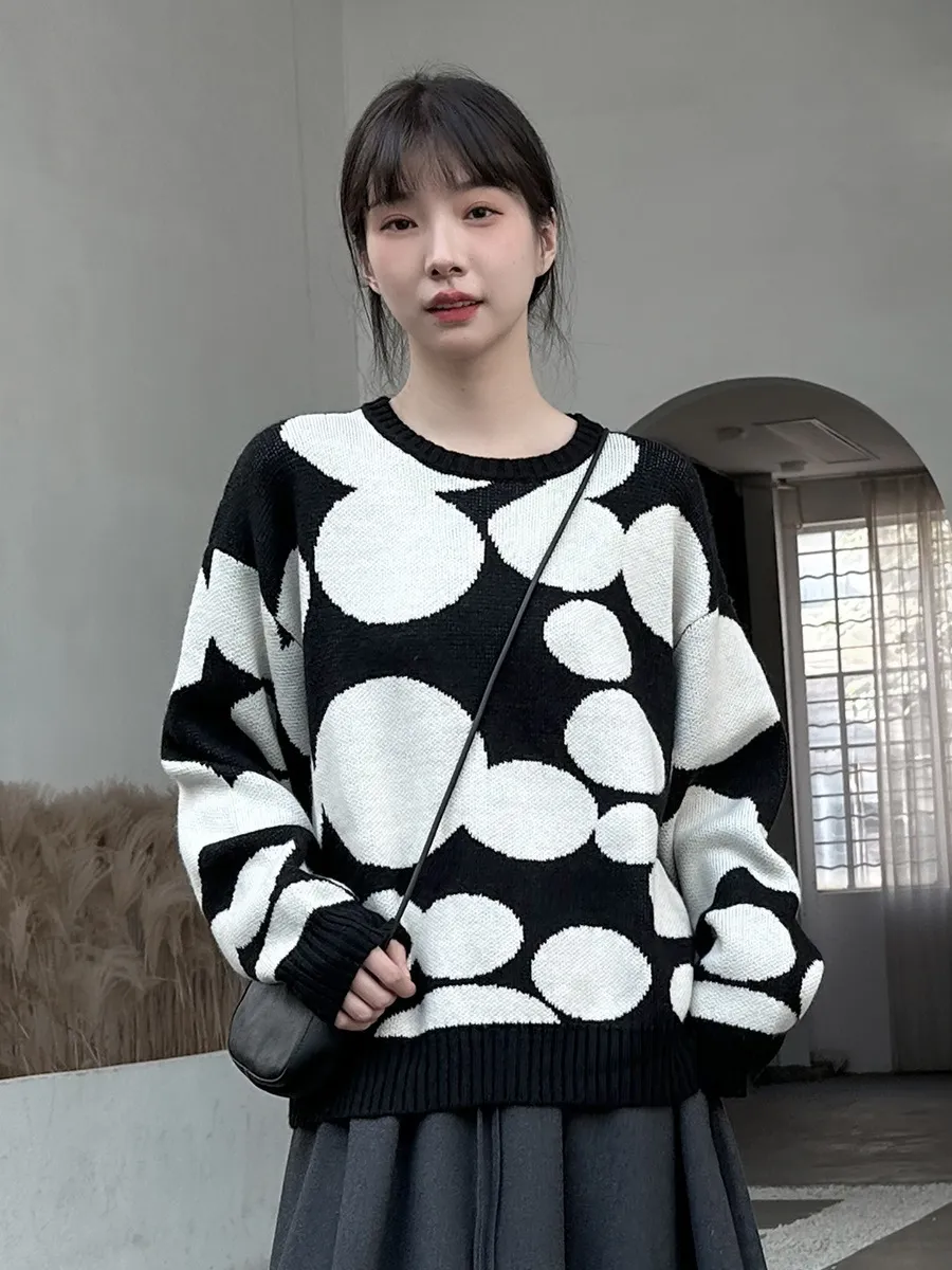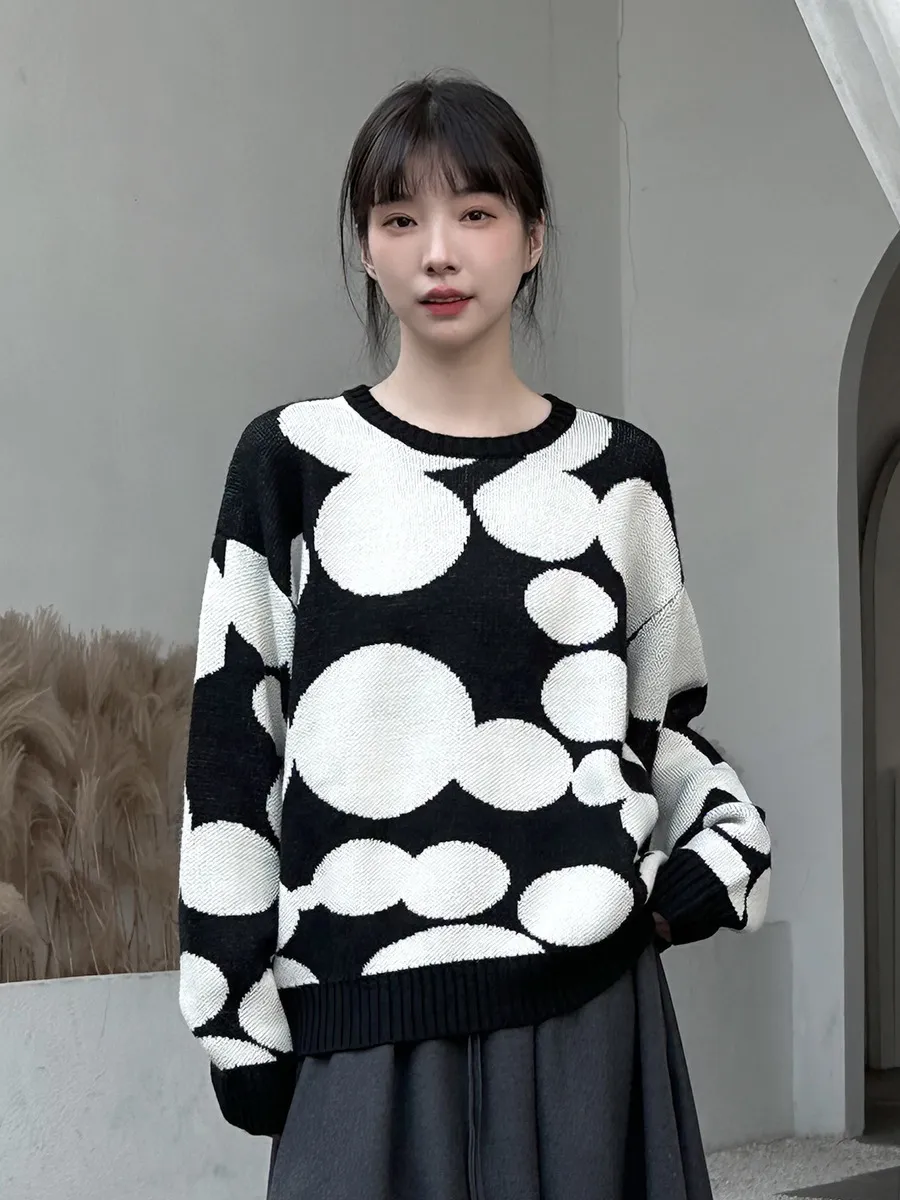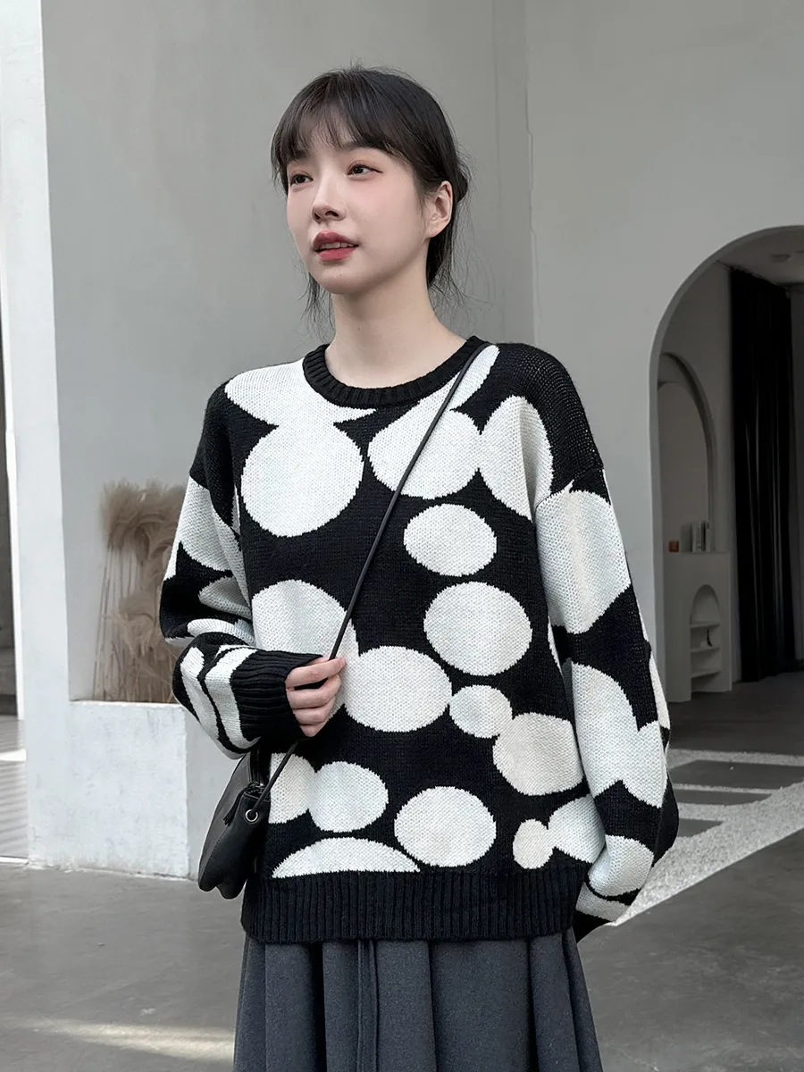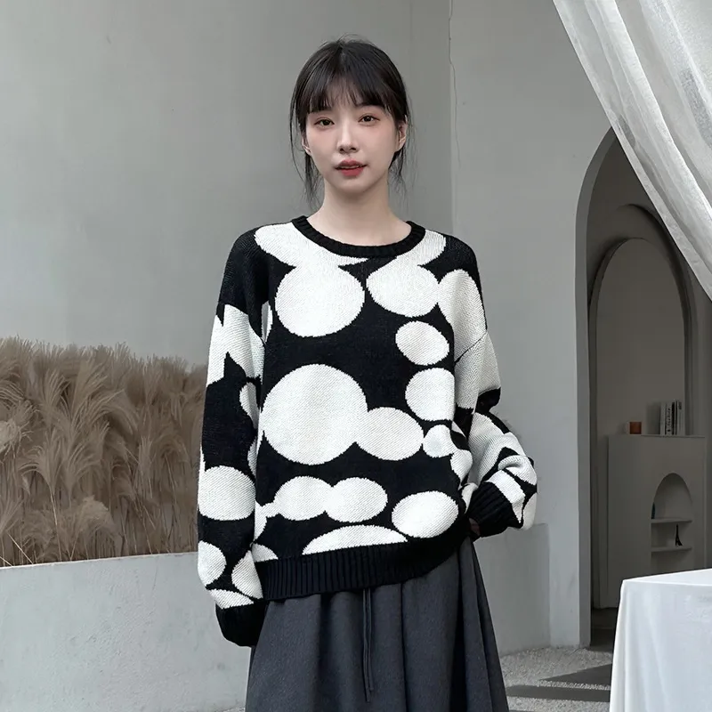 衣都精品- 2023新款慵懶風寬鬆顯瘦簡約圓點拼色上衣