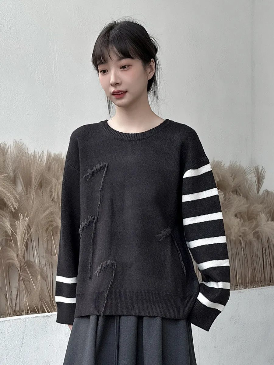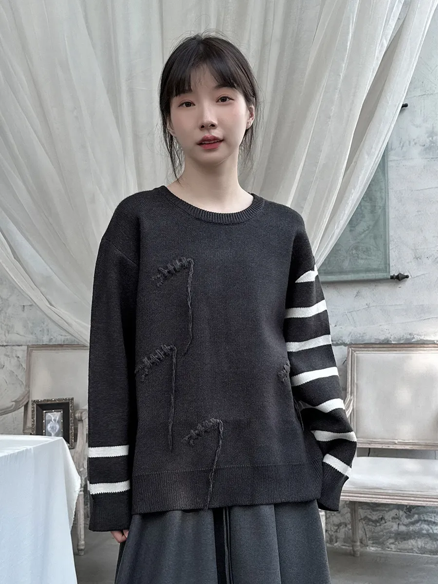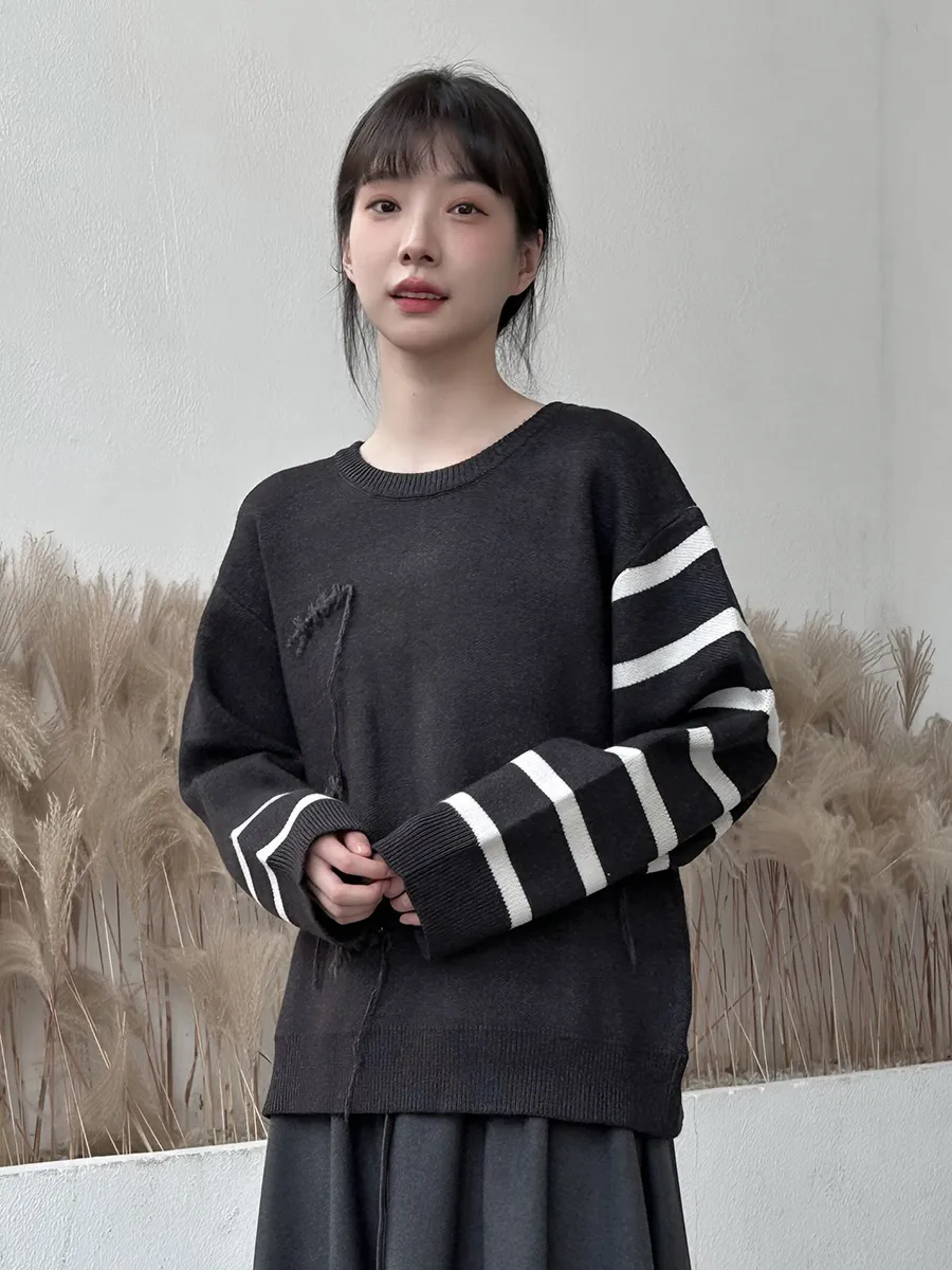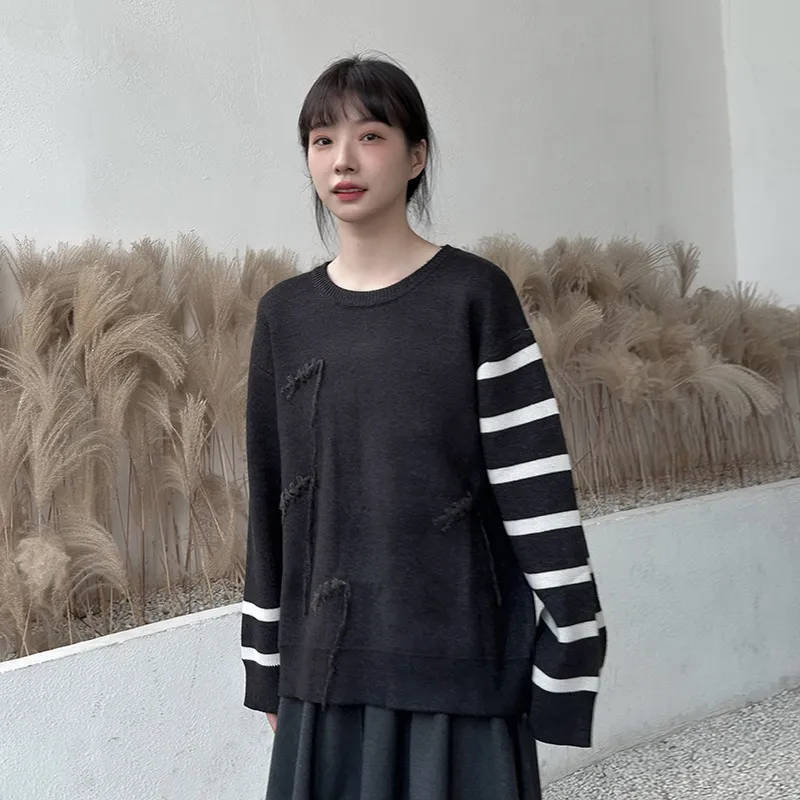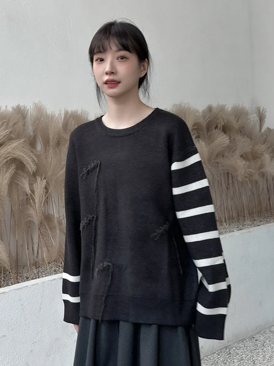 衣都精品- 2023新款日系手工線條不對稱拼接條紋上衣