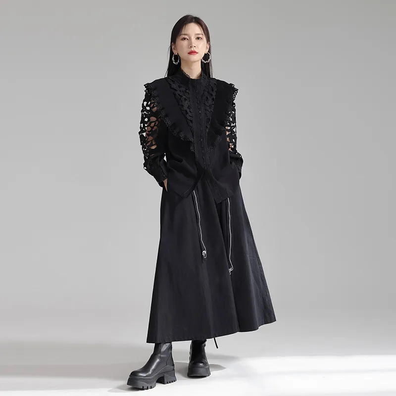 衣都精品- 2023新款暗黑重工黑色立體花紋半身裙