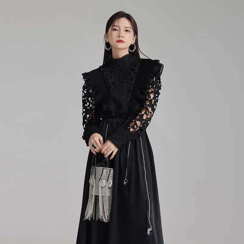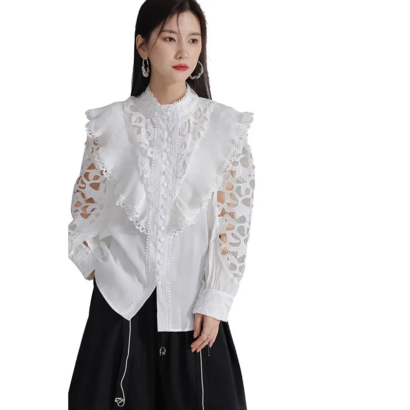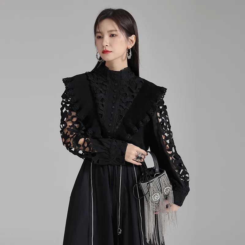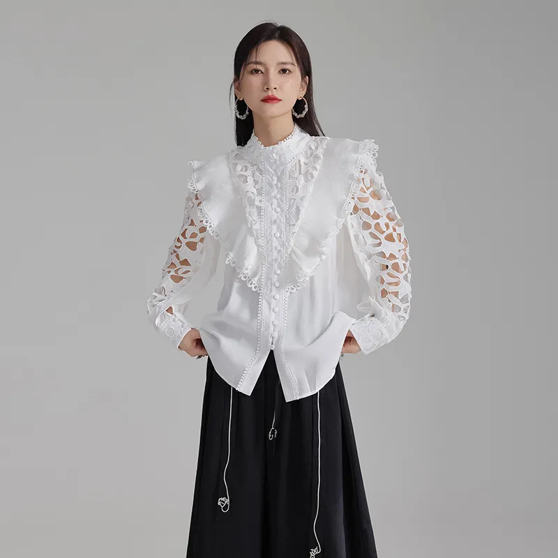衣都精品- 2023新款宮廷風法式刺繡鏤空顯瘦立領上衣