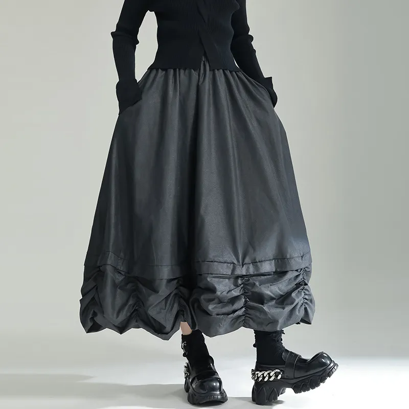 衣都精品- 2023新款下擺褶皺花苞鬆緊腰傘狀半身裙