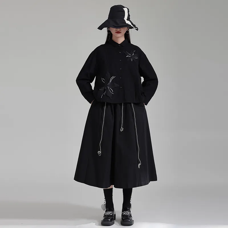 衣都精品- 2023新款暗黑重工黑色立體花紋半身裙