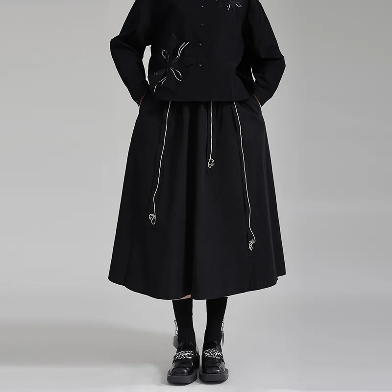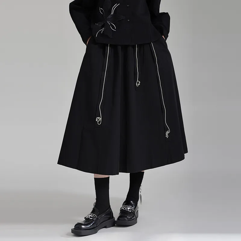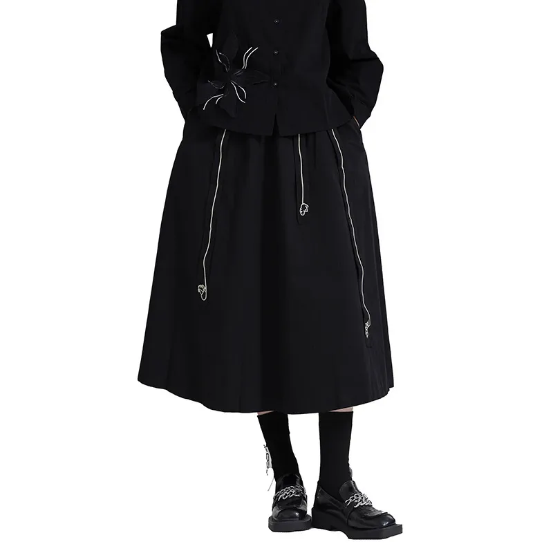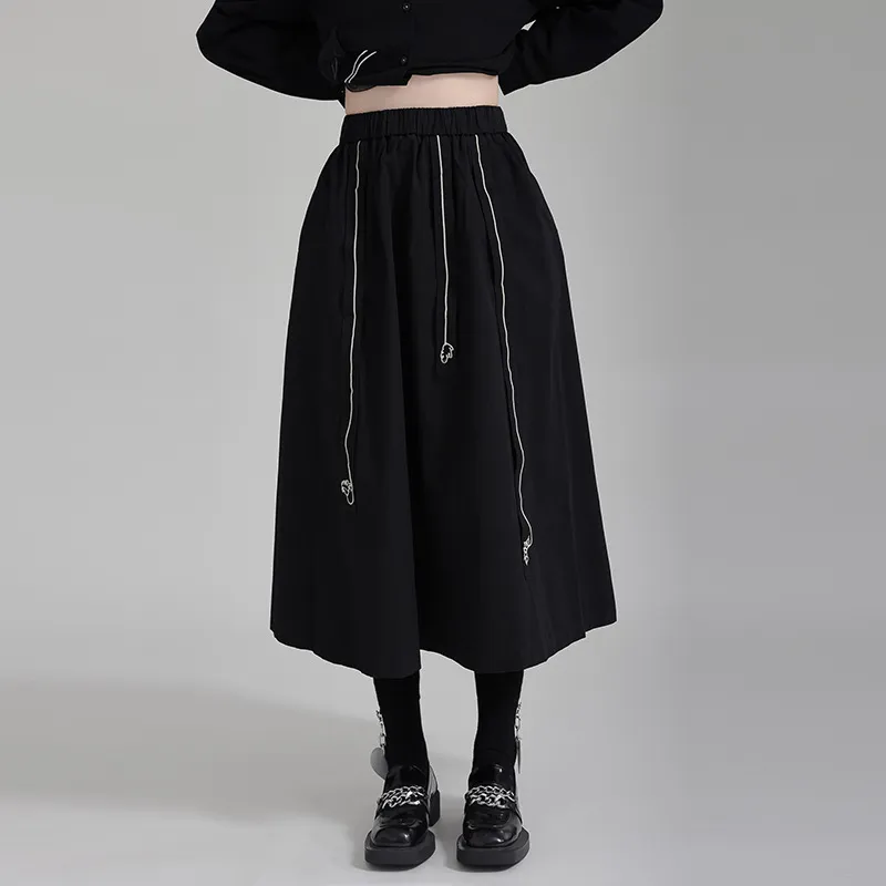 衣都精品- 2023新款暗黑風刺繡明線撞色顯瘦半身裙