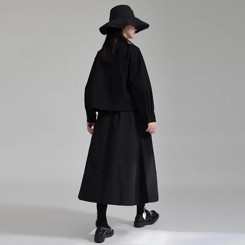 衣都精品- 2023新款不規則山本暗黑風撞色鬆緊腰半身裙