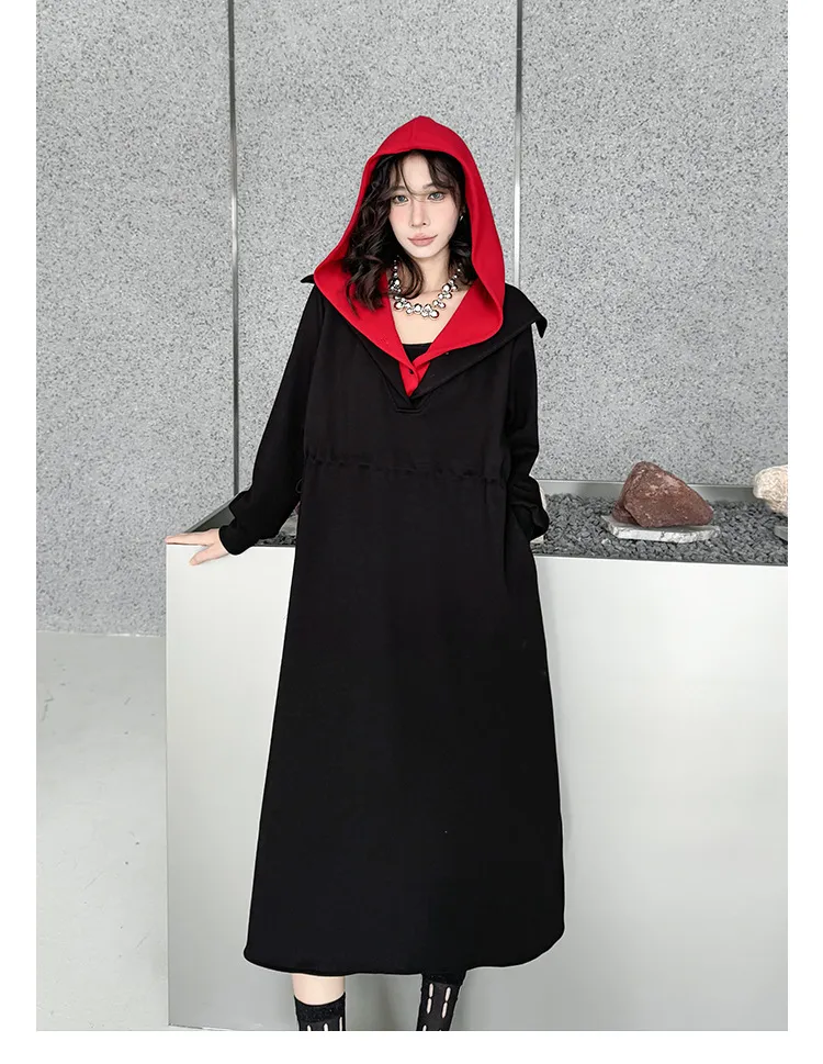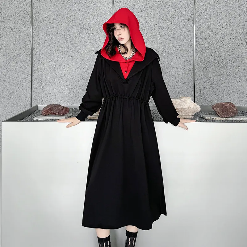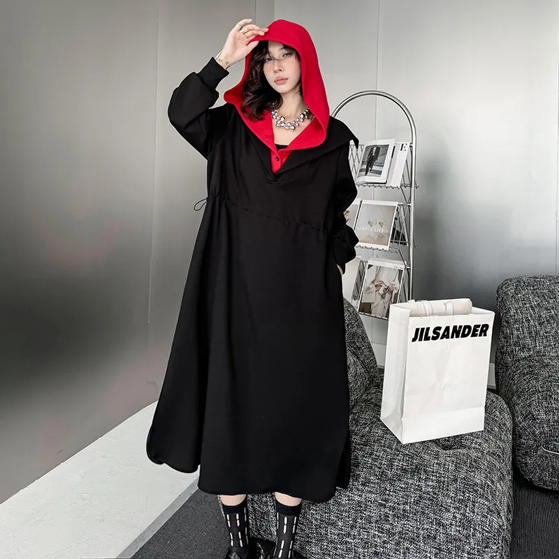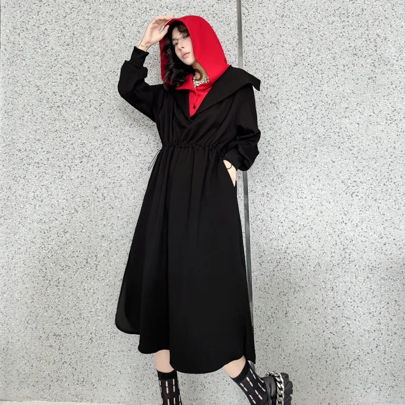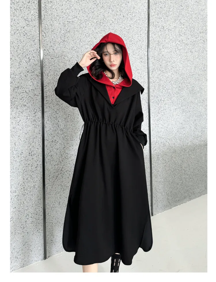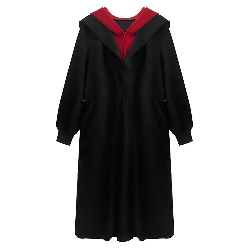 衣都精品- 2023新款韓版休閒撞色拼接假兩件連衣裙