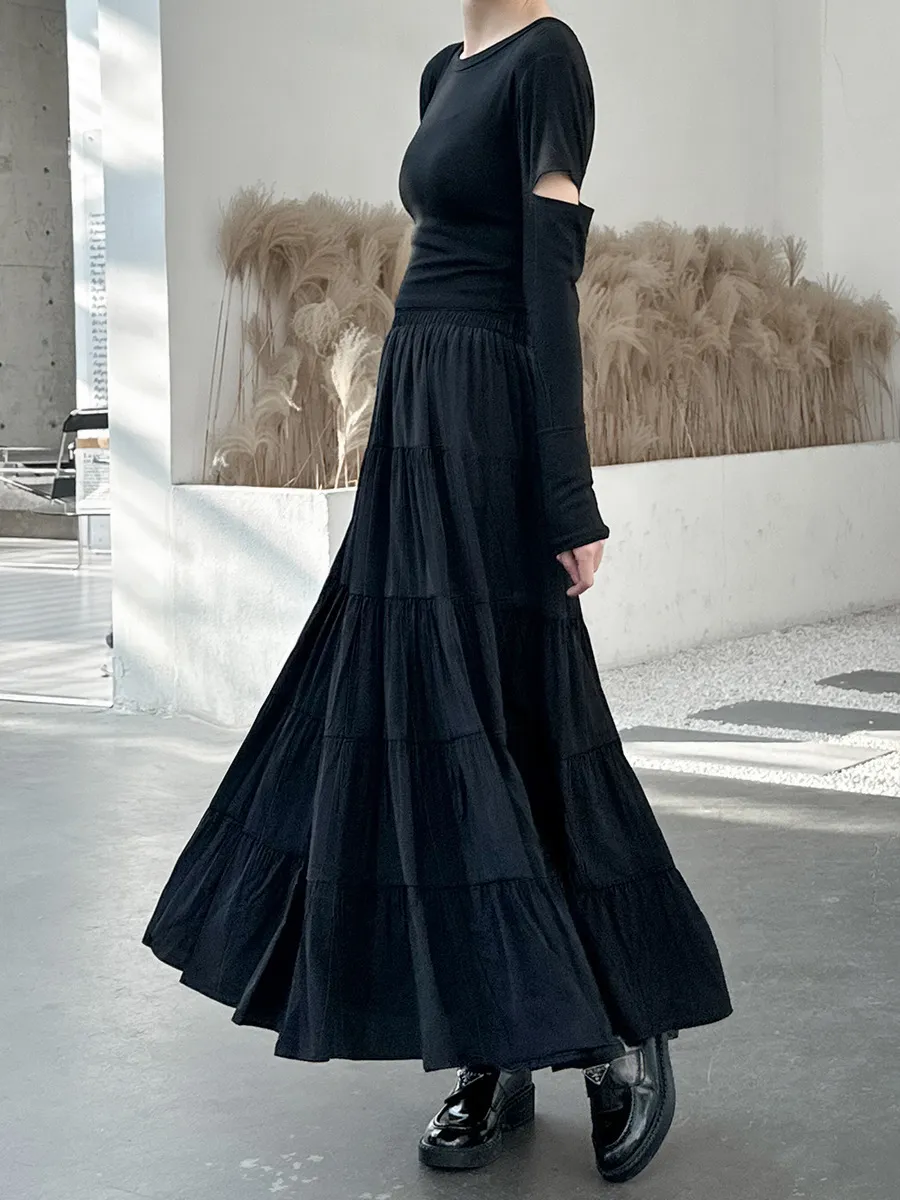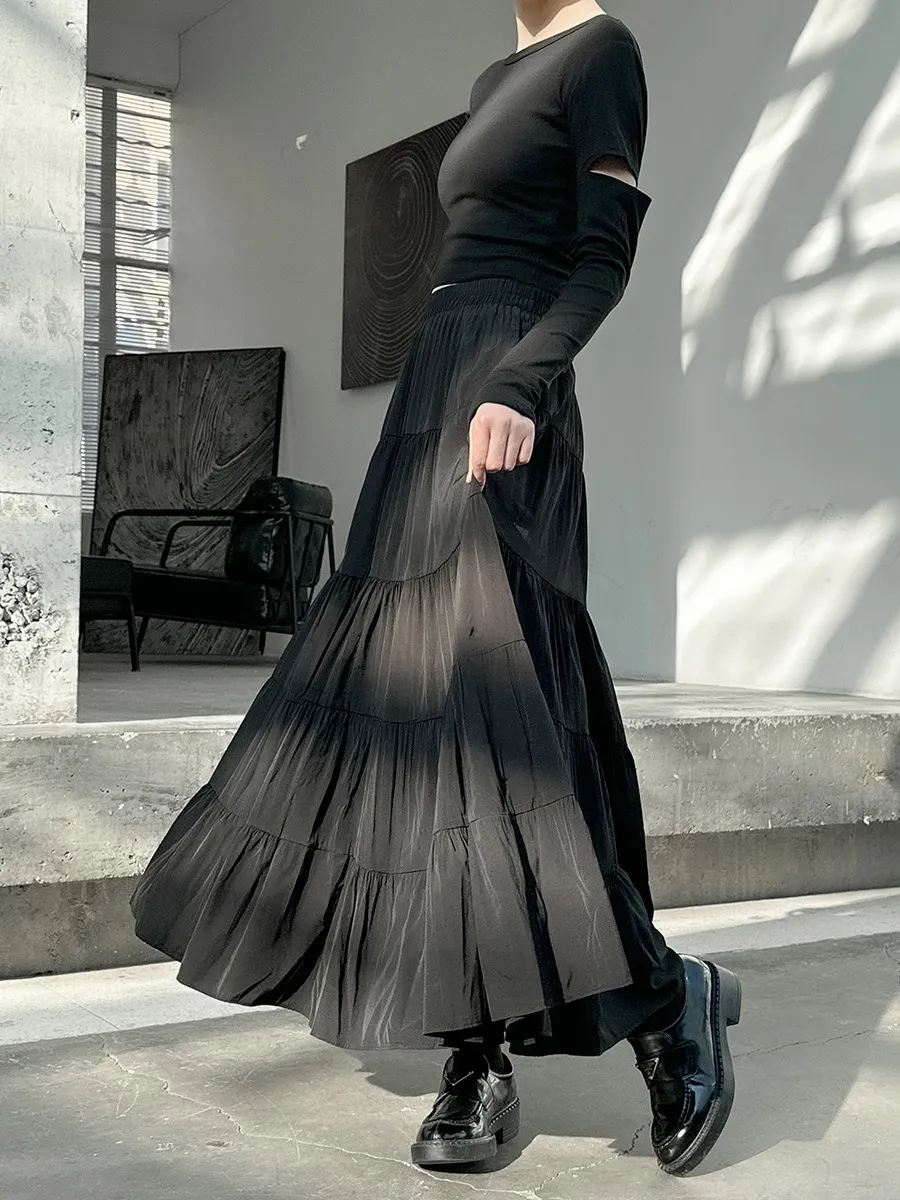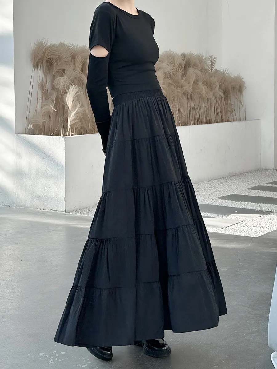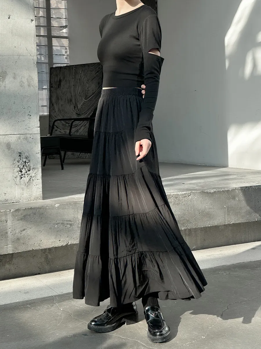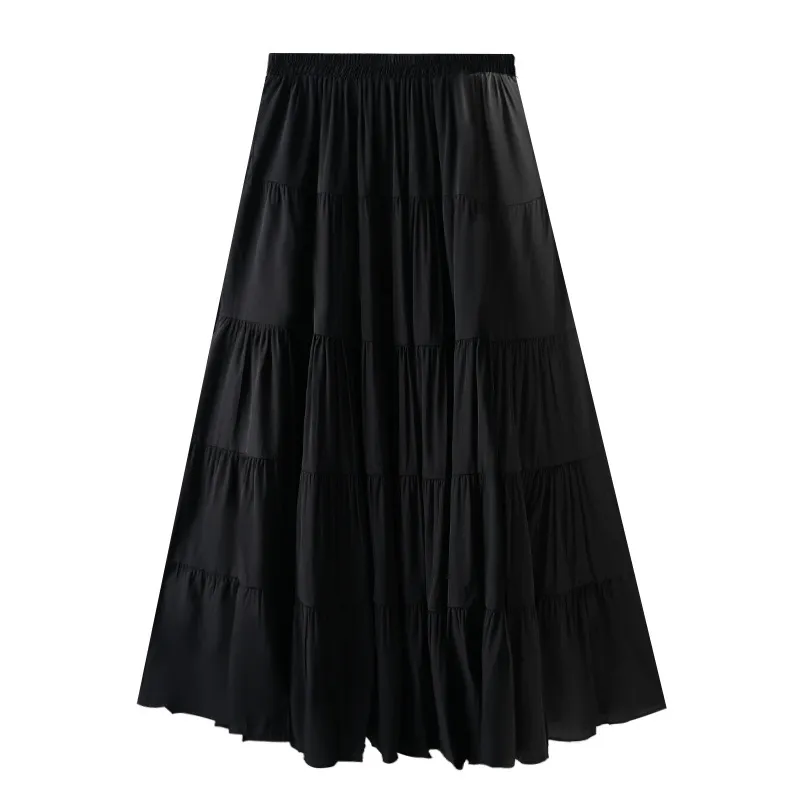 衣都精品- 2024新款純色簡約百搭垂感拼接半身裙