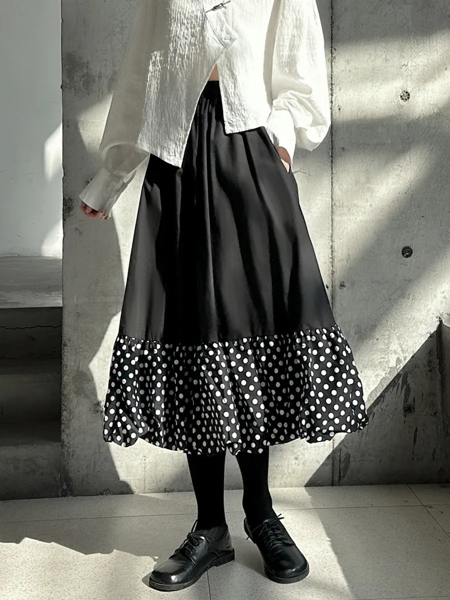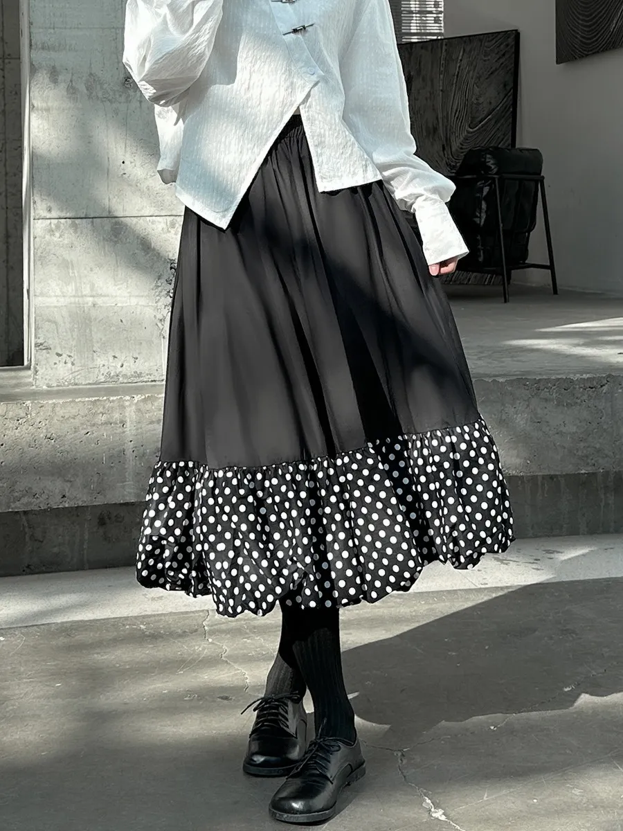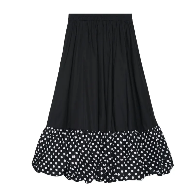 衣都精品- 2024新款山本波點拼接鬆緊腰蓬蓬下擺半身裙