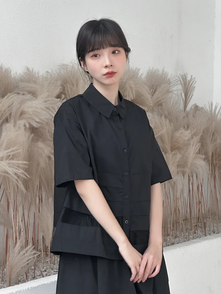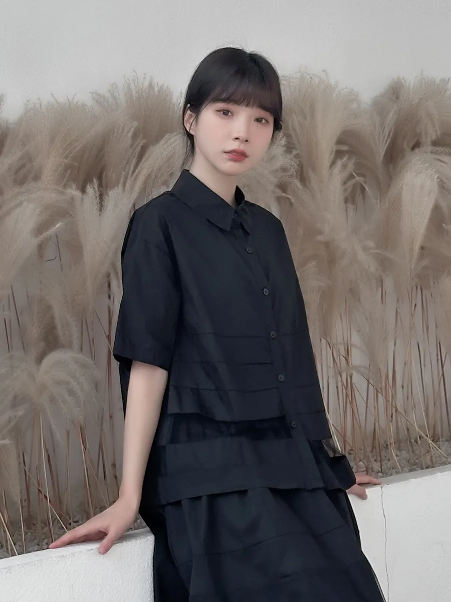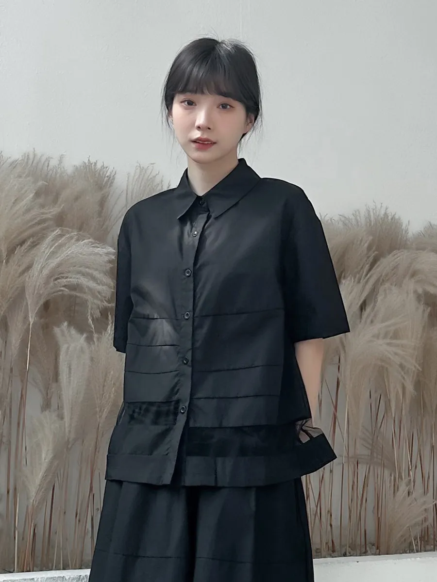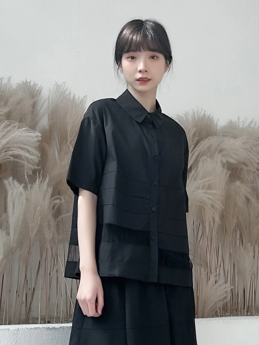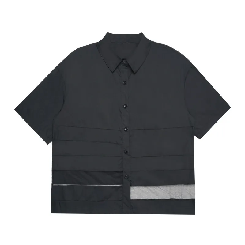 衣都精品- 2024新款山本暗黑風紗網鏤空不規則拼接上衣