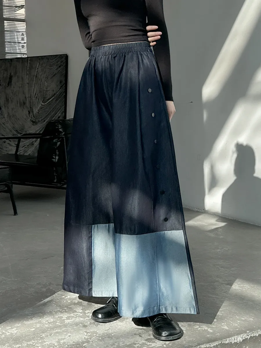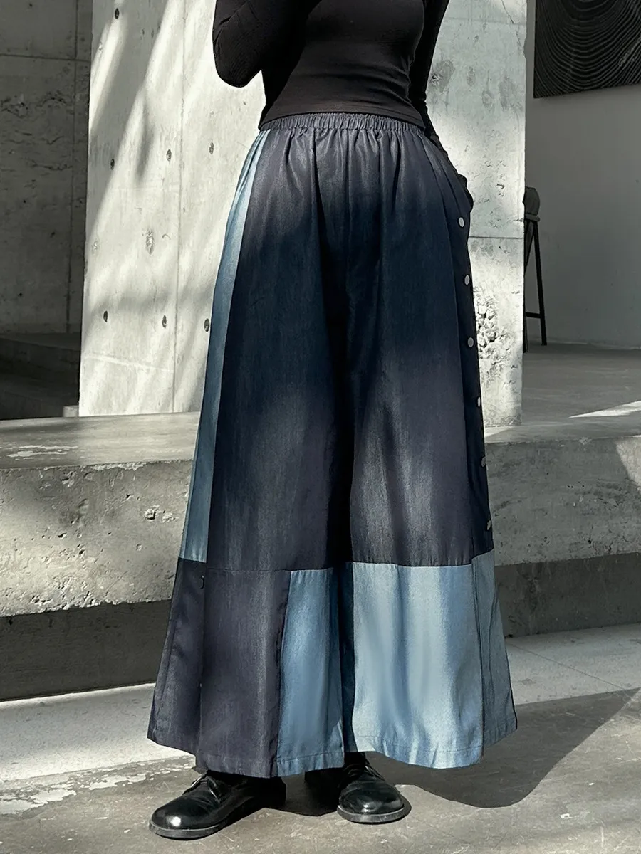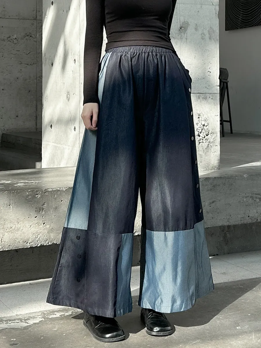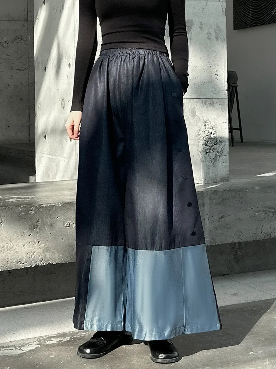 衣都精品- 2024新款暗黑拼接撞色鬆緊腰休閒闊腿褲
