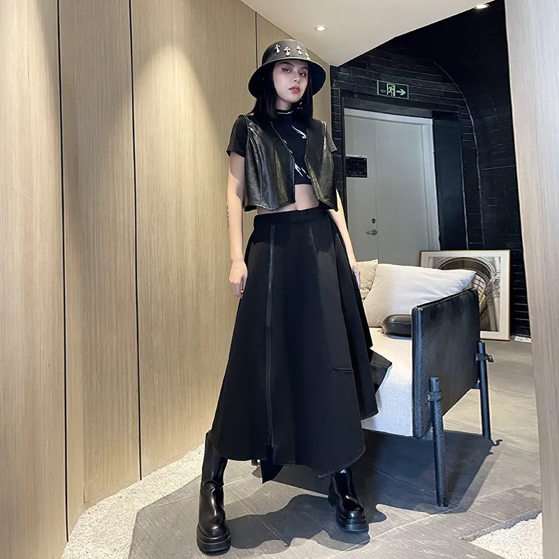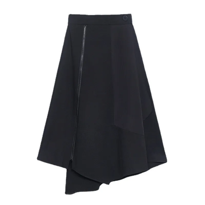 衣都精品- 新款日系暗黑風洋氣不對稱拉鍊開叉半身裙