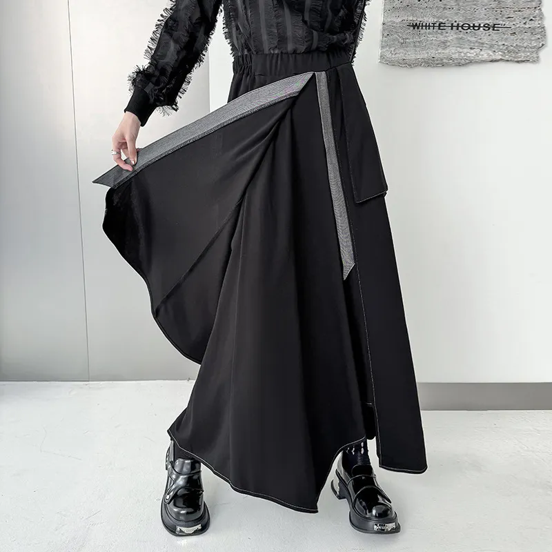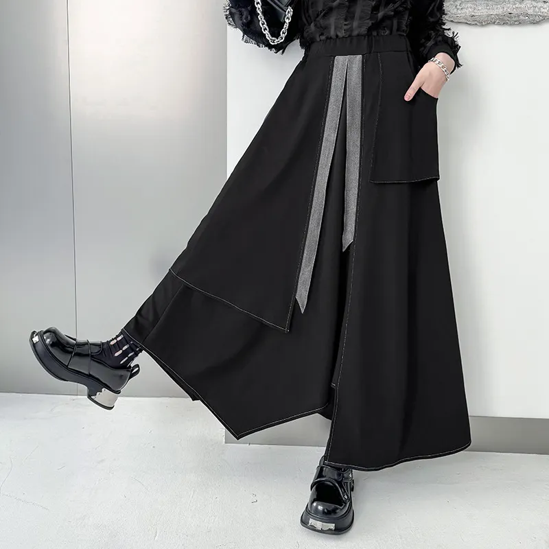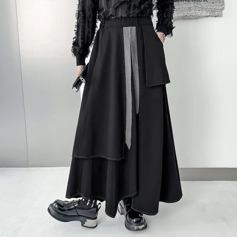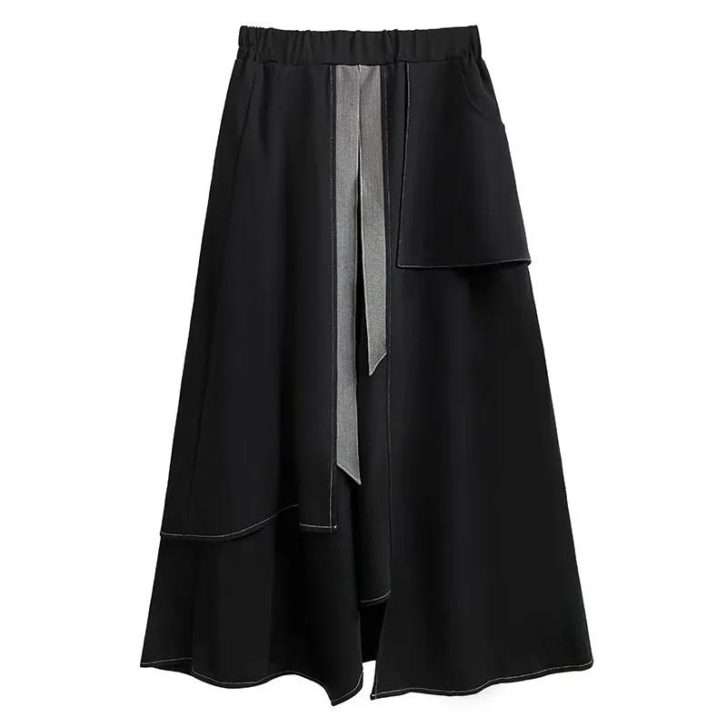 衣都精品- 新款山本風小眾設計高腰拼接白線撞色半身裙