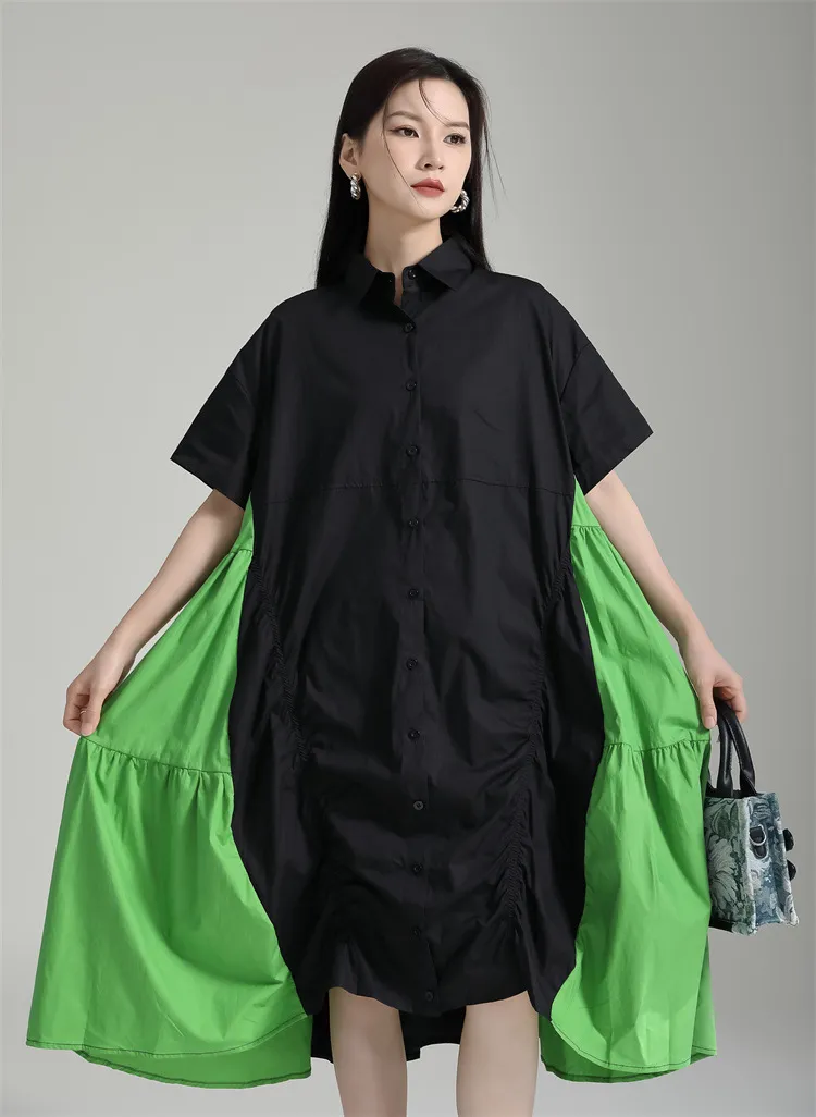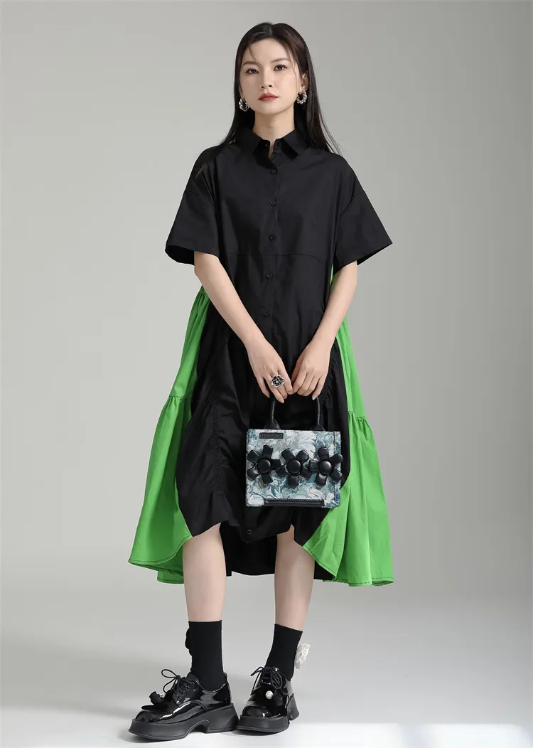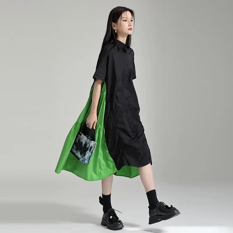 衣都精品- 新款寬鬆顯瘦大擺不規則撞色褶皺連衣裙