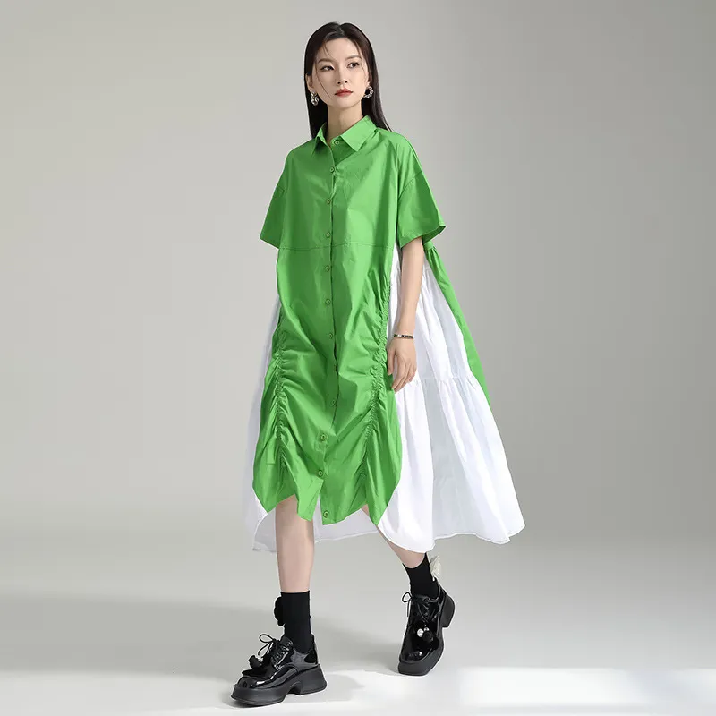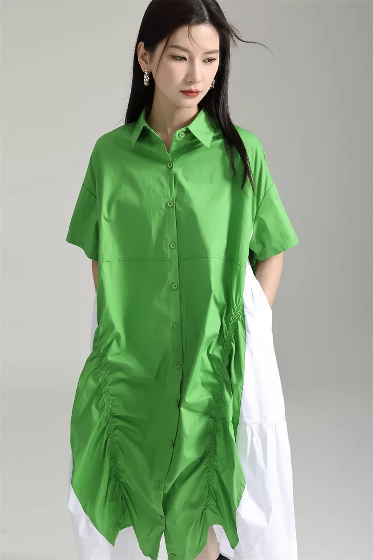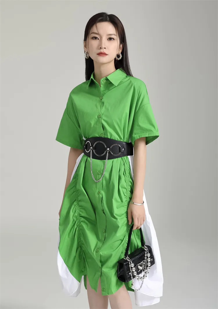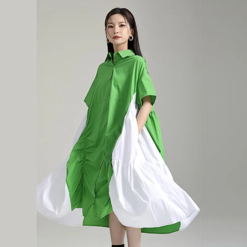 衣都精品- 新款寬鬆顯瘦大擺不規則撞色褶皺連衣裙