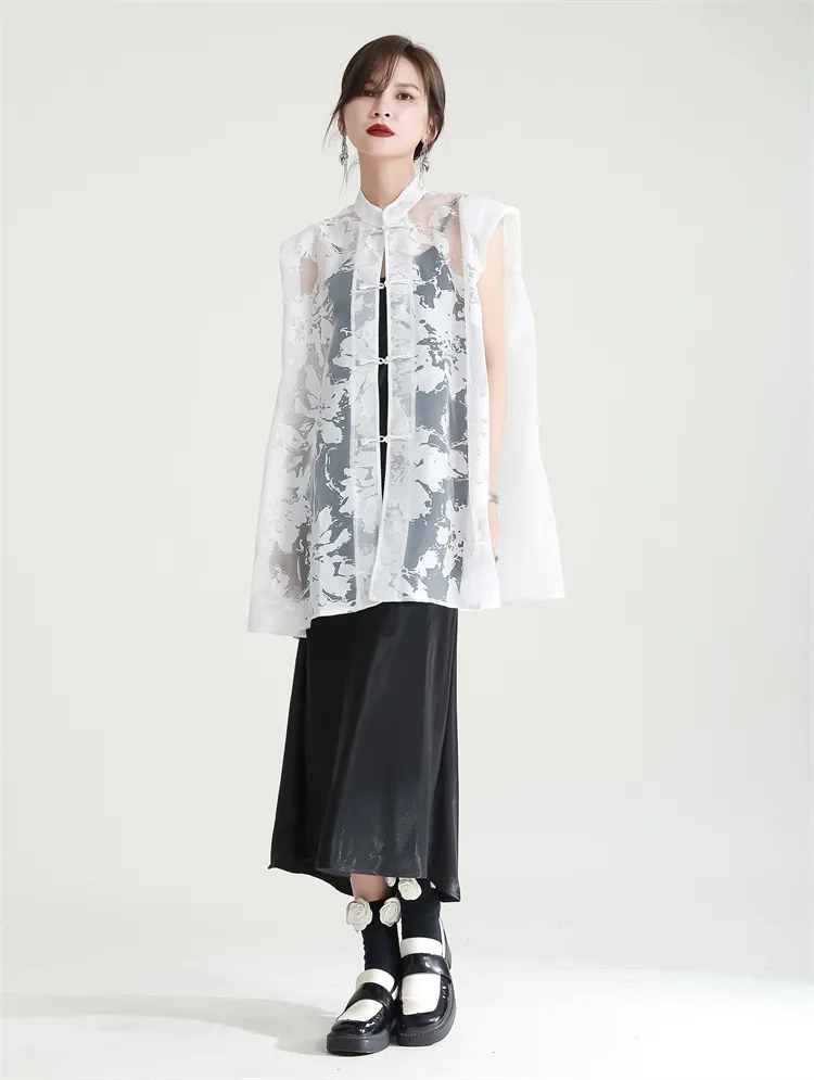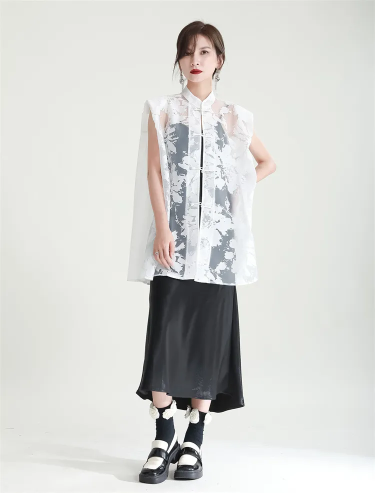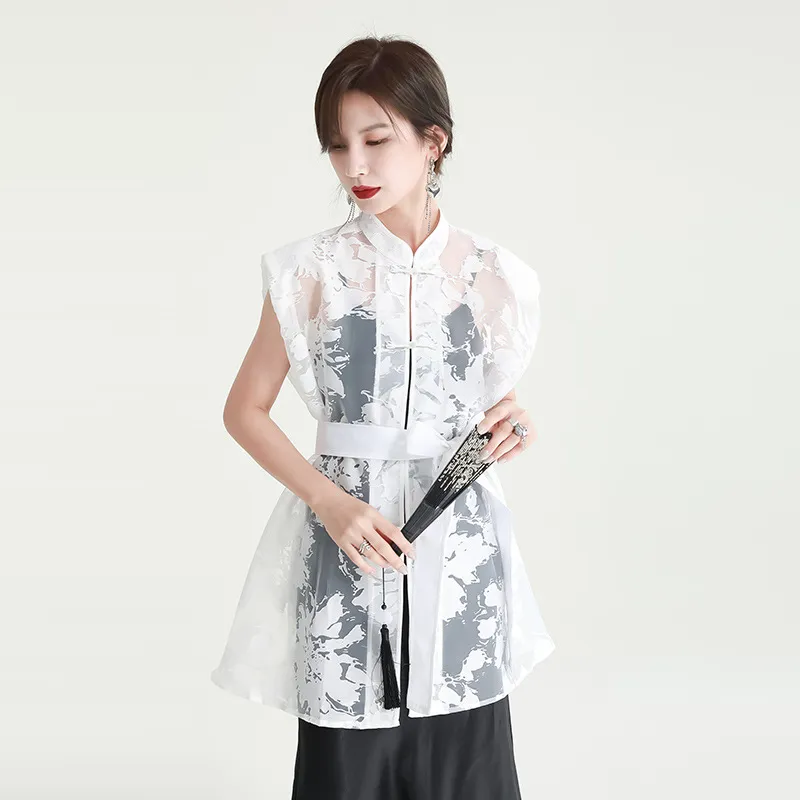 衣都精品- 新款設計感透視旗袍盤扣繫帶無袖上衣