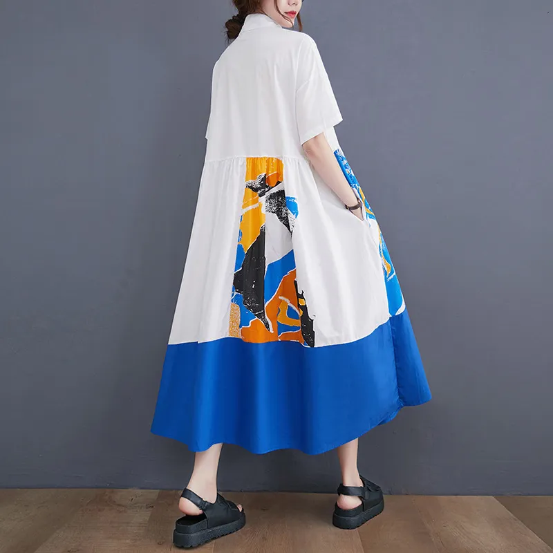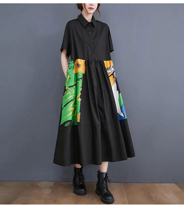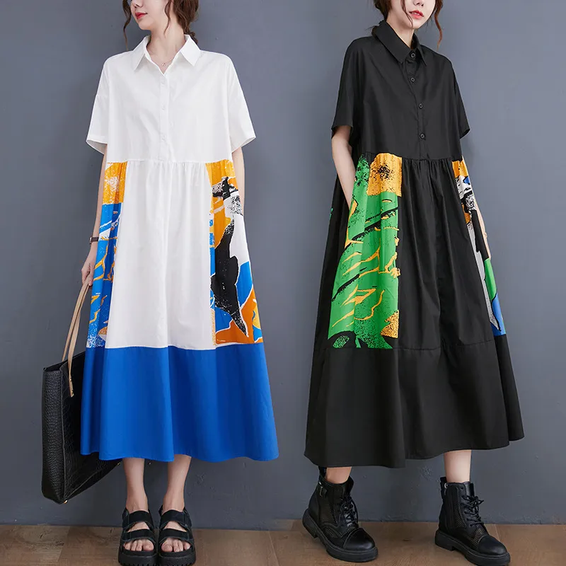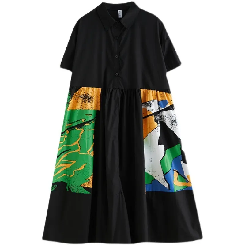 衣都精品- 新款大碼寬鬆顯瘦洋氣短袖印花拼接連衣裙